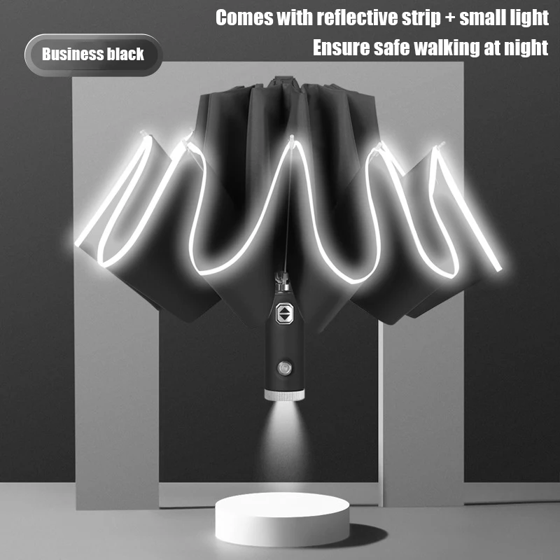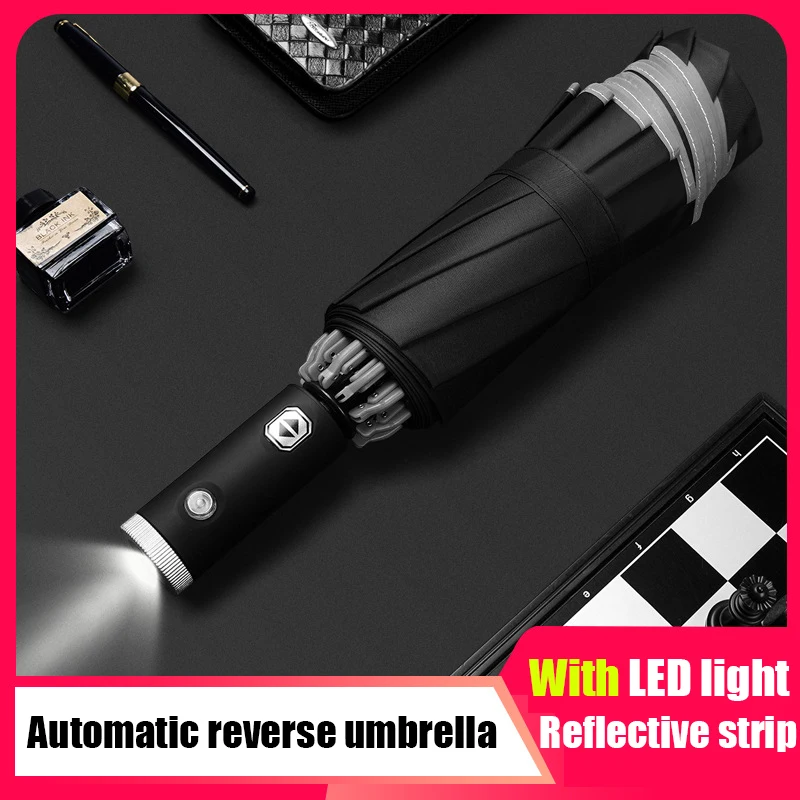 Высококачественный креативный автоматический зонт с обратной окантовкой, светоотражающий светодиодный зонт, деловой Зонт с затенением и ручным дождем