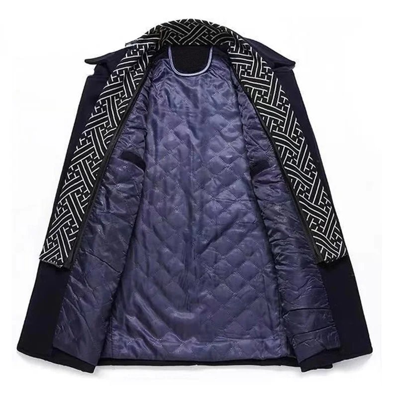 Зимнее шерстяное пальто мужское средней длины утепленное хлопковое ...
