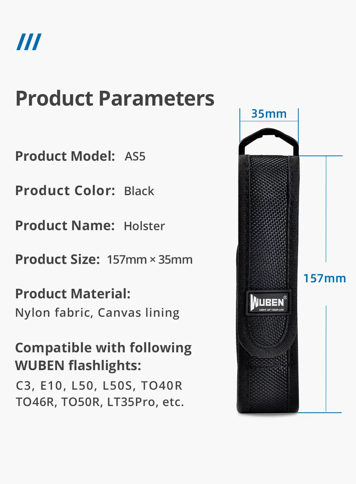 Регулируемая нейлоновая сумка для хранения WUBEN AS5, 6x1,2 дюймов, для C3, E10, L50, TO40R, TO46R, TO60R и т. Д.
