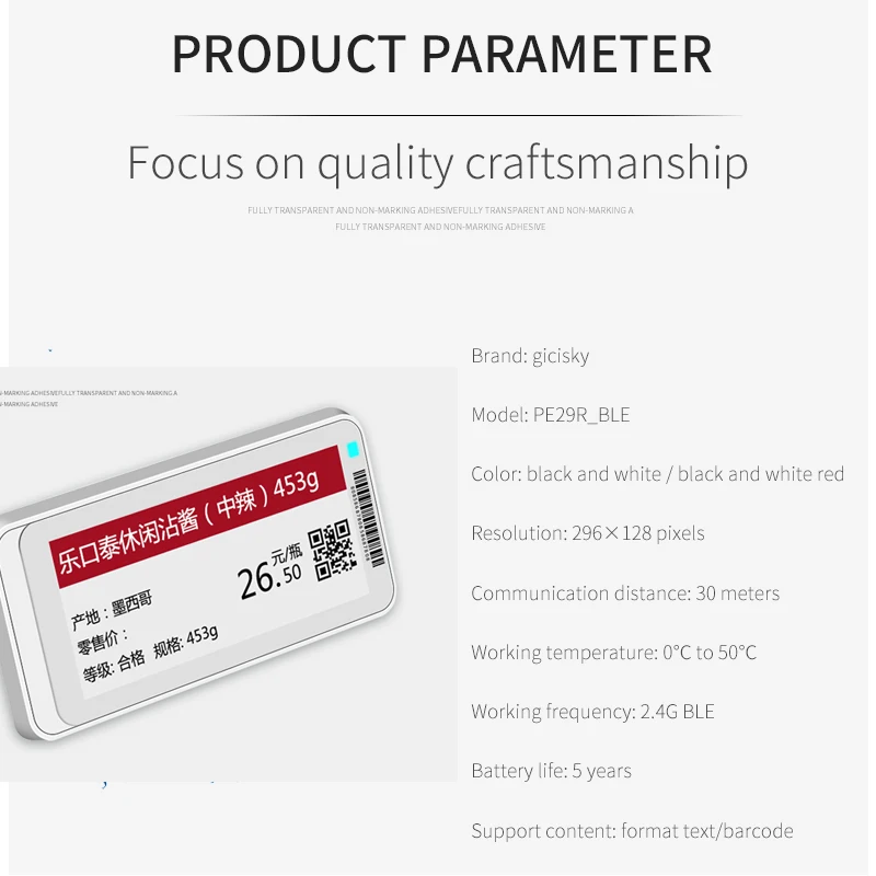 Новое обновление Водонепроницаемый 2,9 дюйма Eink Экран дисплея ценник электронные Полочные метки Ble Управление единого информация о продукте
