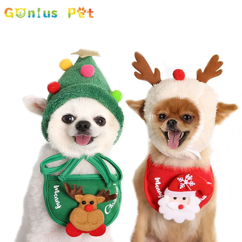 Рождественская шапка для домашних животных, слюнявчик, слюнявчик, н...