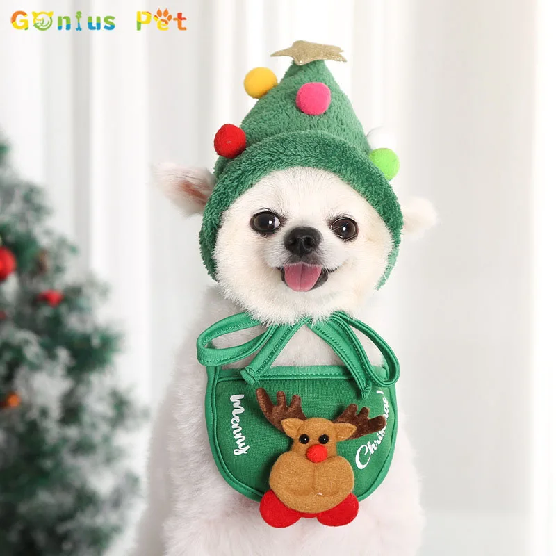 Рождественская шапка для собак и кошек, слюнявчик, Тедди для борьбы...