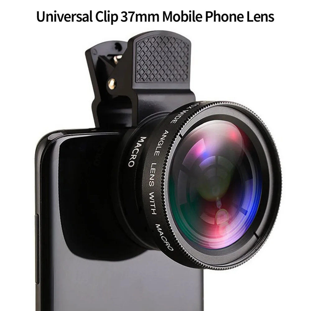 Объектив 2 в 1, универсальный зажим 37 мм, фотообъектив Профессиональный 0,45x 49uv, Супер широкоугольный + макрообъектив HD для iPhone, Android