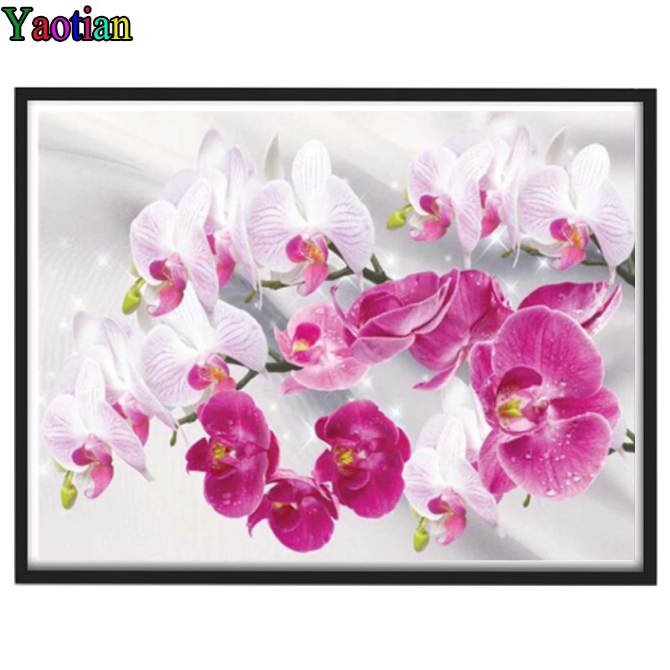 5D Diy алмазная живопись цветы Орхидея вышивка крестиком Мозаика 100% круглая картина алмазное ремесло Стразы домашний декор