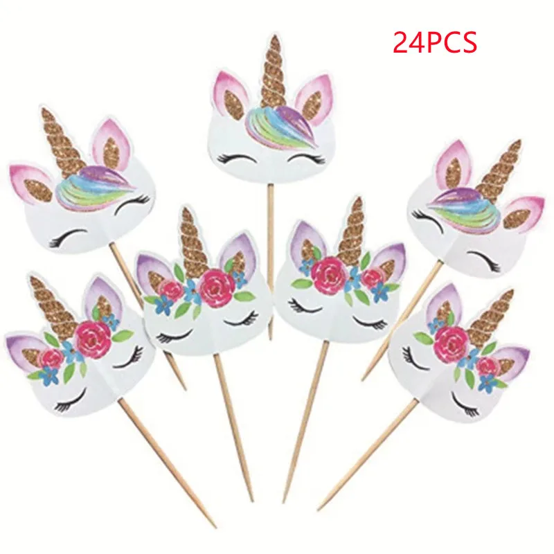 Лидер продаж 2022, 24 шт., топперы для торта в виде единорога, для вечерние ринки, дня рождения, вечеринки, детского праздника, для свадьбы, капкейка, для домашней вечеринки