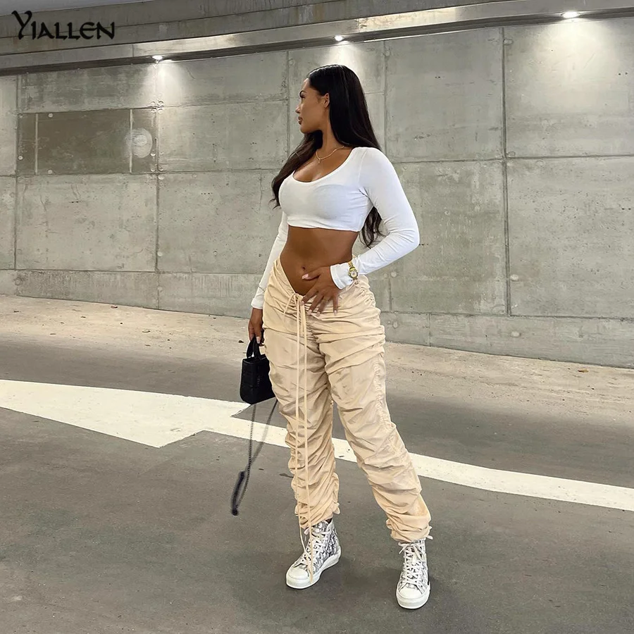 Брюки Yiallen женские с завышенной талией, свободные универсальные повседневные Модные Клубные штаны с завязками, уличная одежда, Y2K, осень