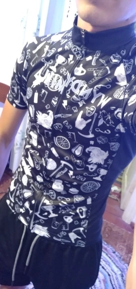 Хорошая футболка, красивая и размер подошел идеально. Принт яркий и стильный. Спереди на молнии, сзади внизу есть карманы для всякой мелочи, по нижнему контуру вшита силиконовая лента что бы футболка во время езды не сползала вверх. Я очень доволен! Выиграл за 1 цент и монетки. Продавцу огромное спасибо!