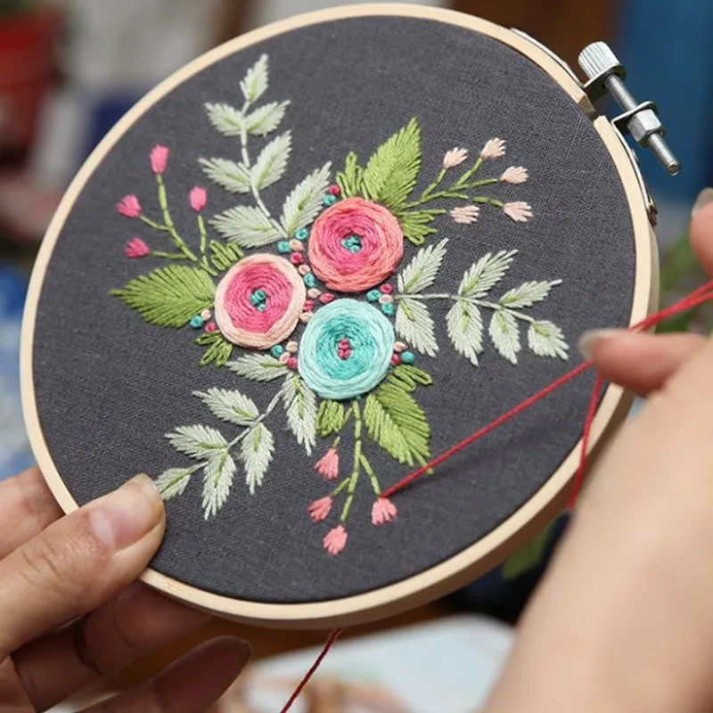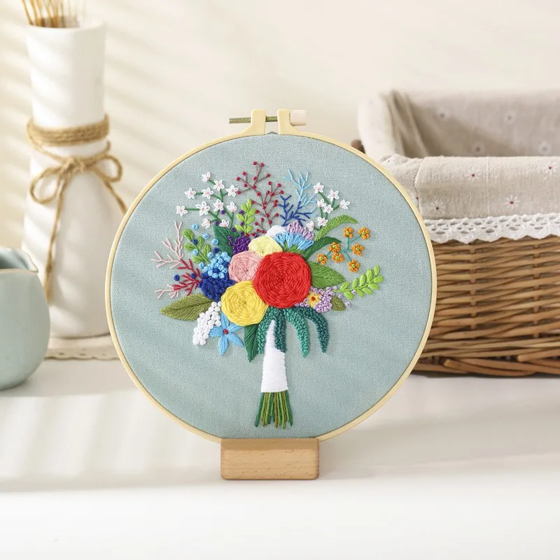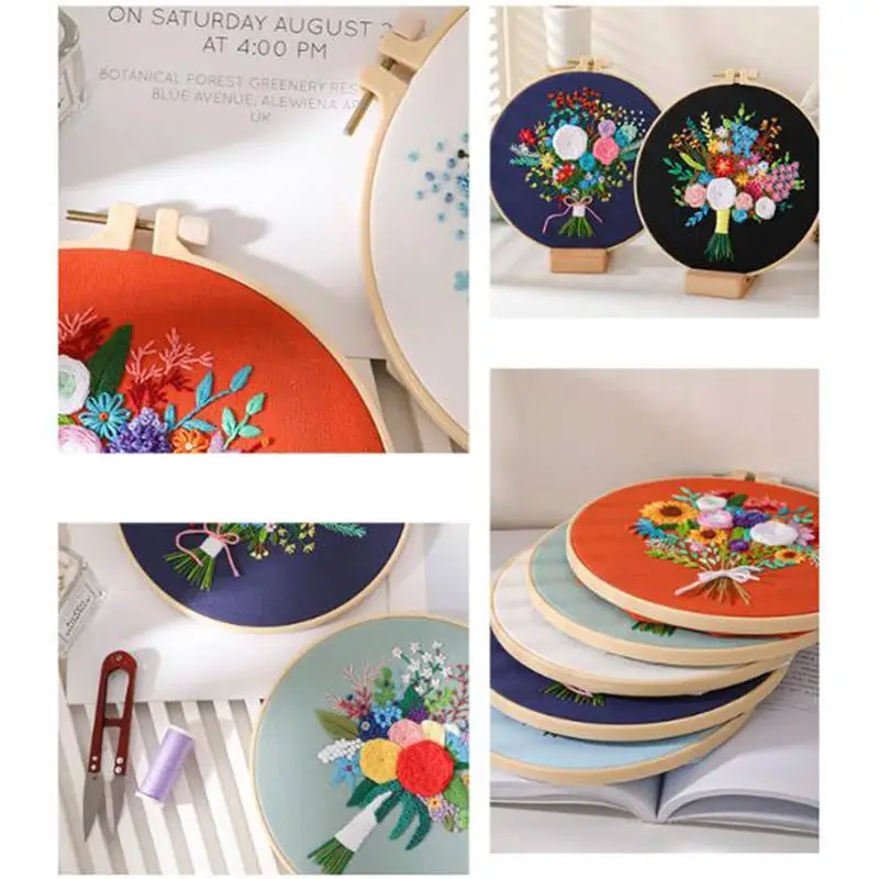 Набор для вышивания с цветочным узором, Набор для вышивания своими руками, стартовый набор с бамбуковой вышивкой, обруч для вышивки крестиком, креативные подарки