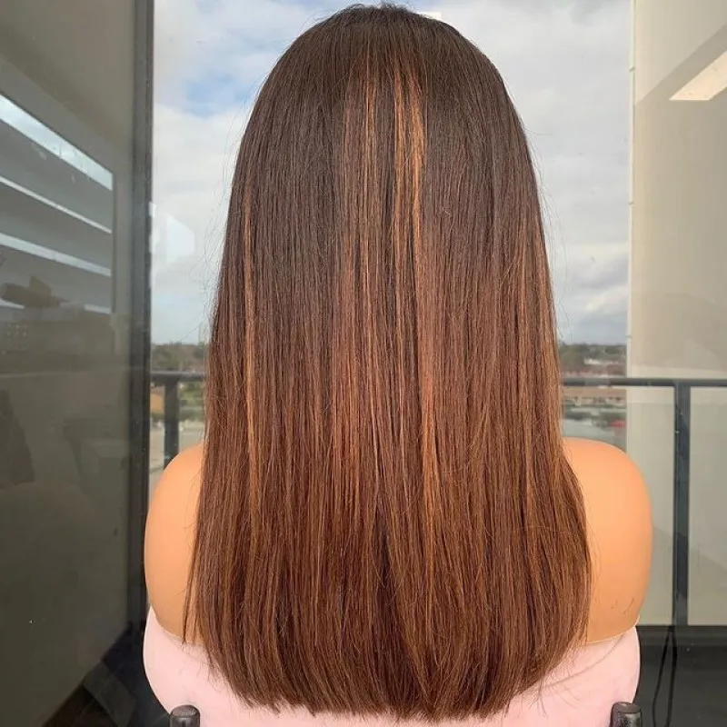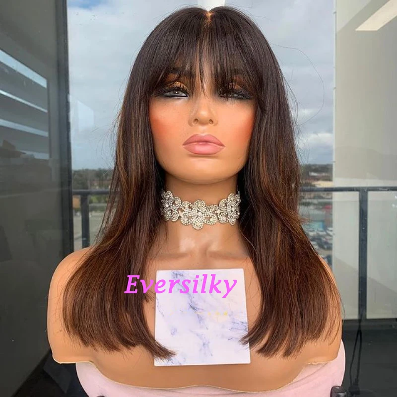Парики из натуральных каштановых прямых волос на сетке, плотность 360, 200%