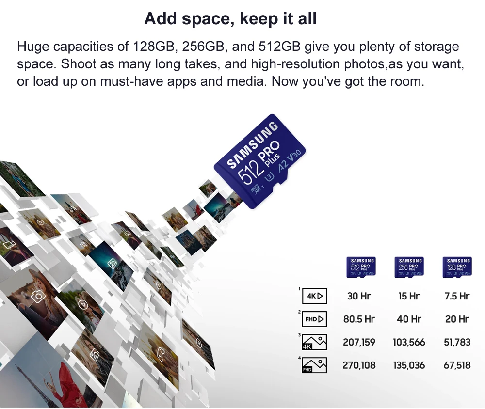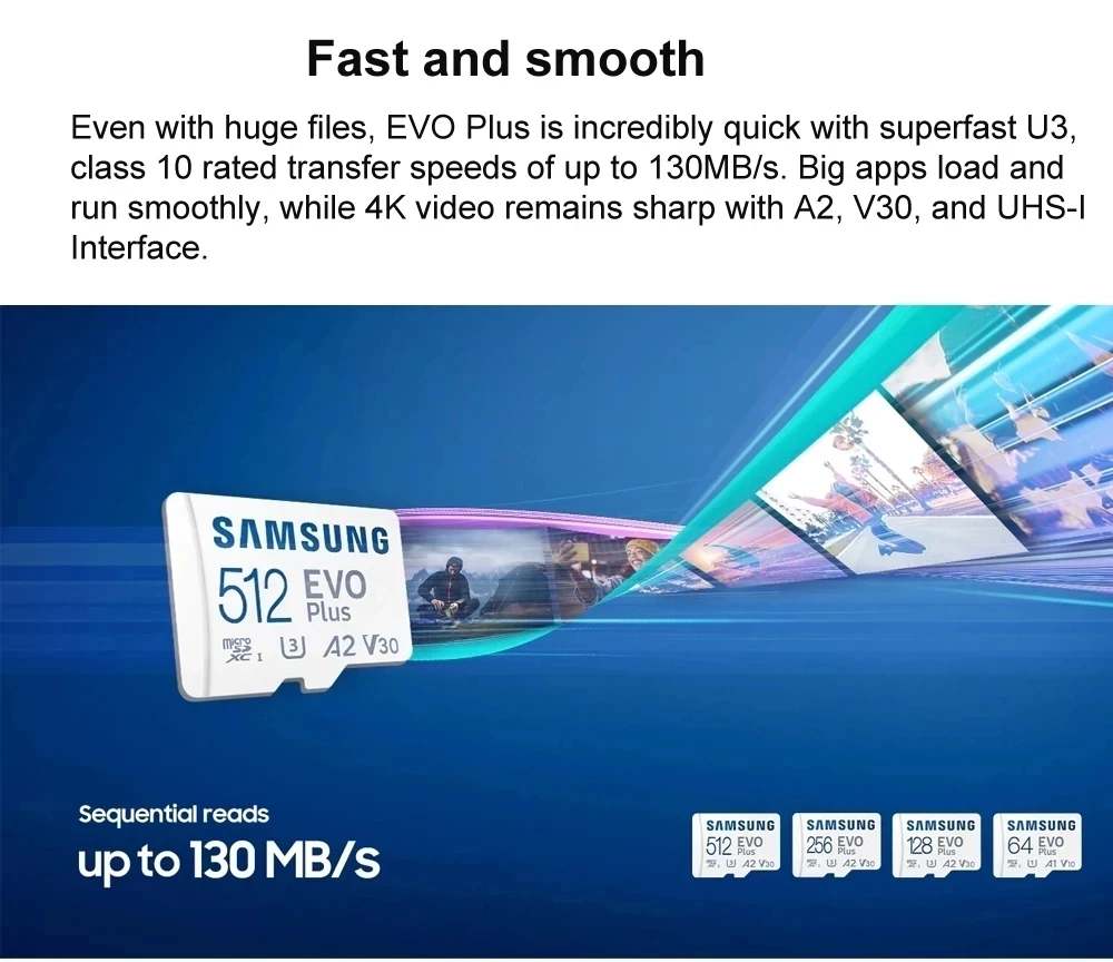 Карта памяти SAMSUNG EVO Pro Plus Micro SD 128 ГБ, карта памяти C10 TF MicroSD SDXC 64 Гб 256 ГБ 512 ГБ U3 4K для телефона, камеры дрона