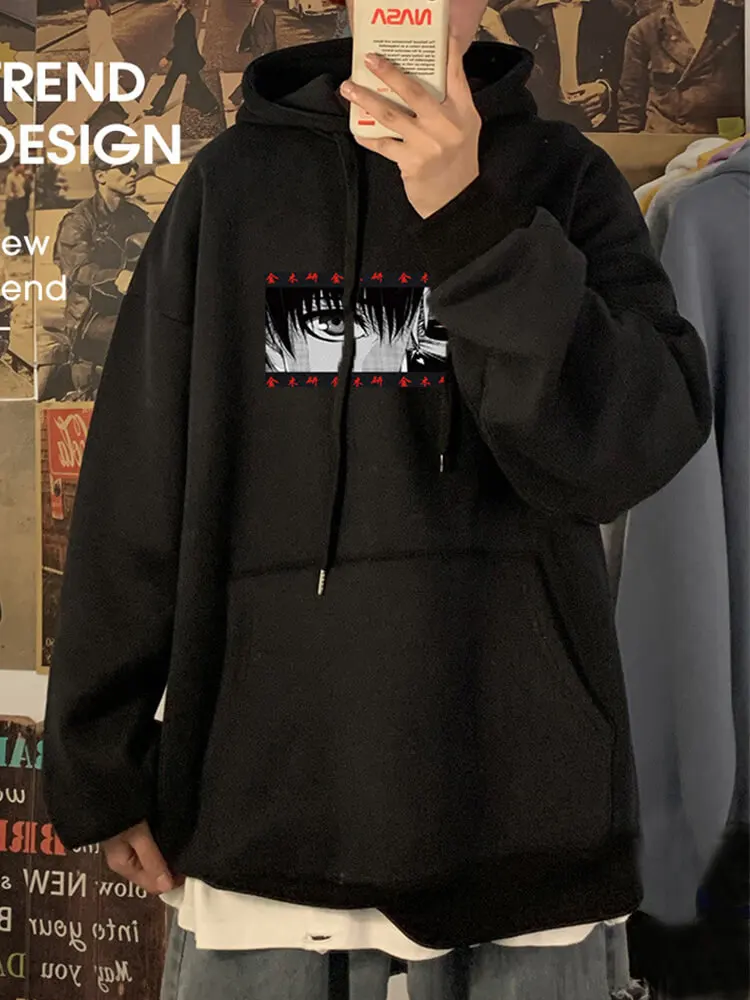Толстовка мужская с японским аниме принтом, повседневный свитшот, п...