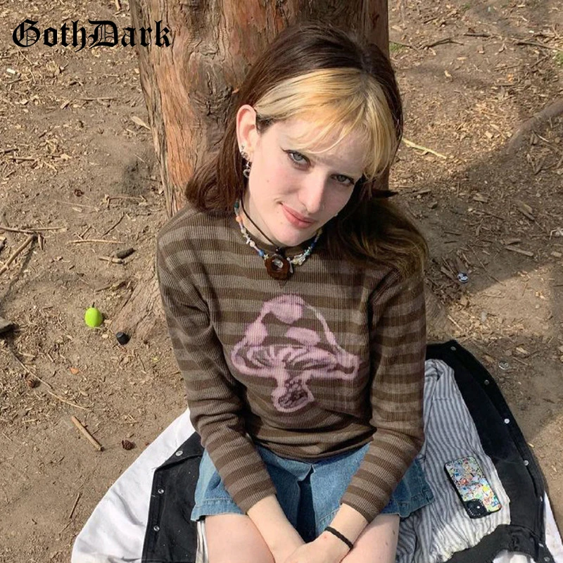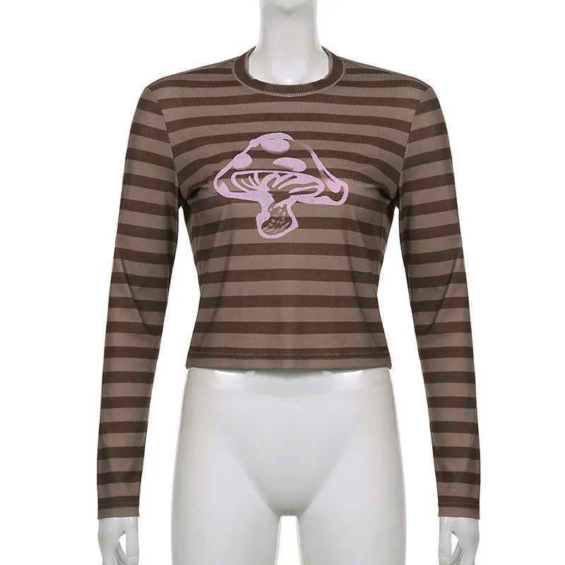 ALLNeon Goblincore эстетические полосатые футболки с рисунком грибо...