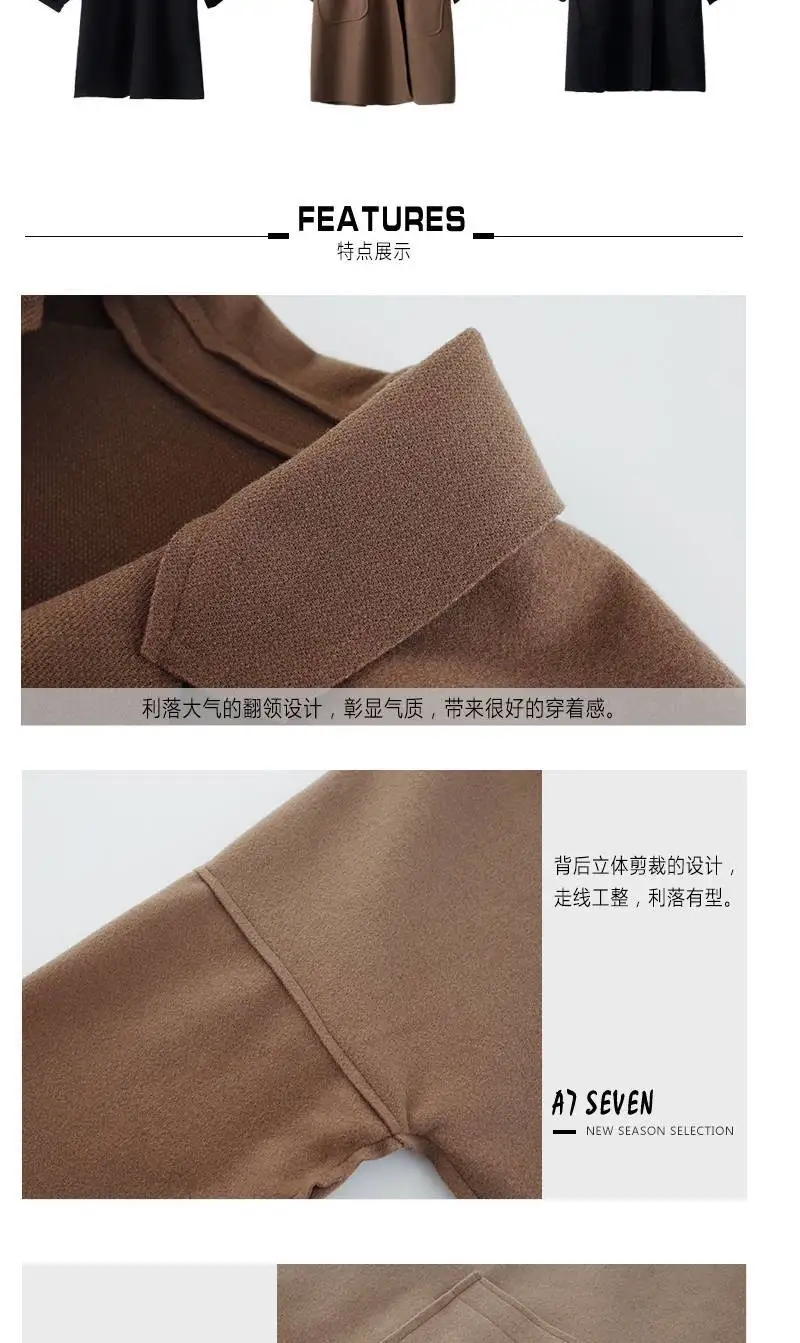 Женское весеннее пальто, новинка 2022, коричневое модное шерстяное ...