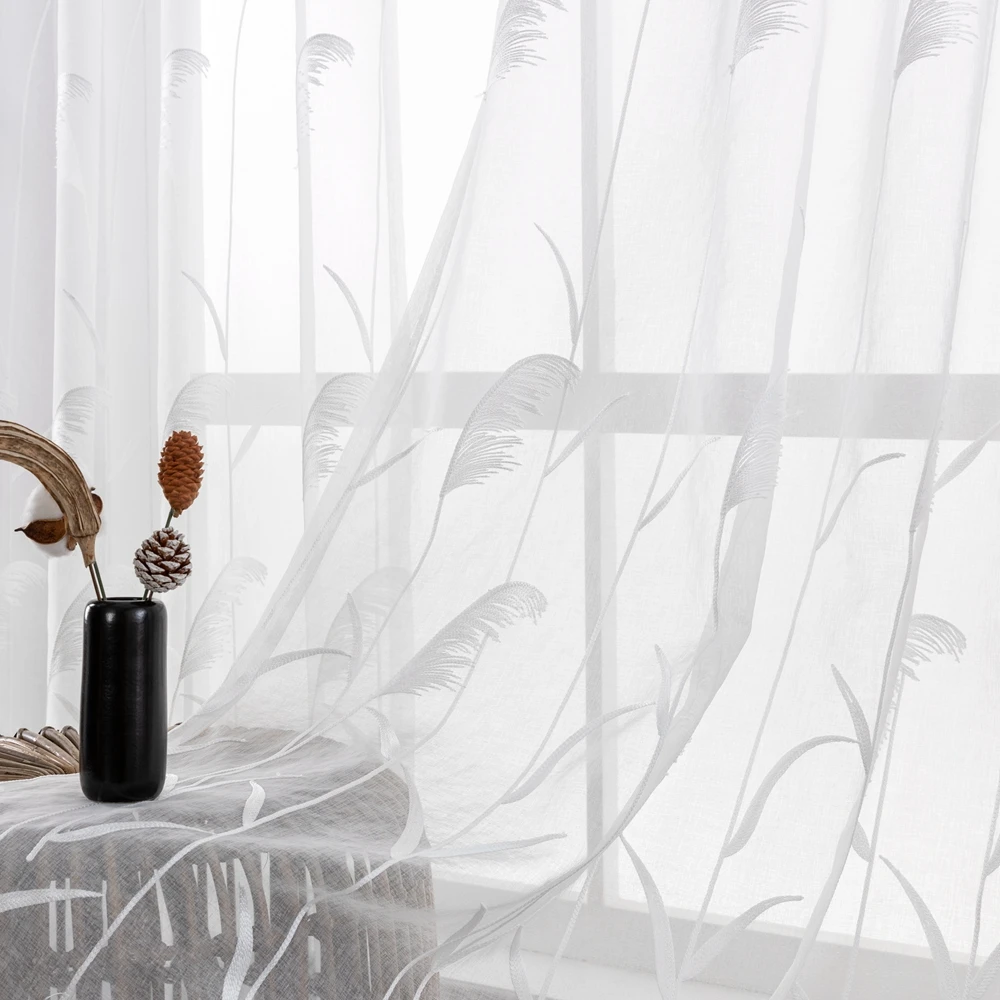 Тюлевые шторы MRTREEES с вышивкой в виде листьев для гостиной, кухн...