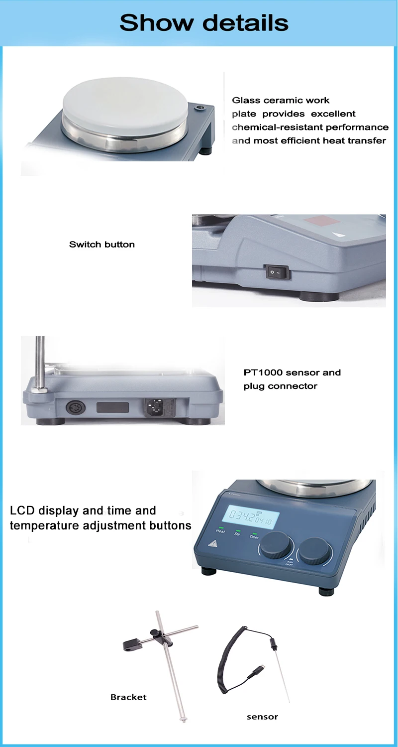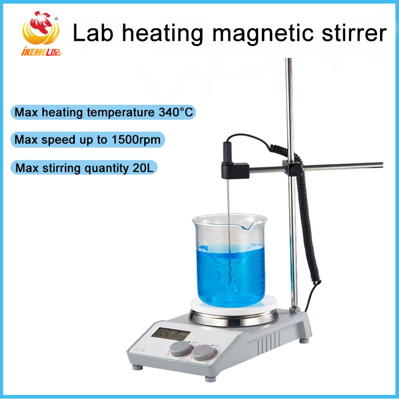 Лабораторный нагревательный магнит мешалка LCD цифровой 0-1500 об/мин нагрев 340 °C Магнитный смеситель с мешочным стержнем максимальное количество перемешивания 20л