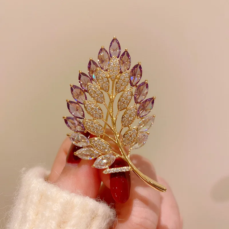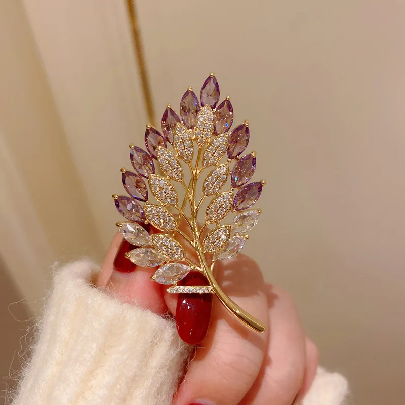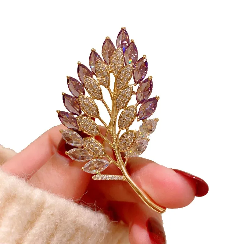 2021 новый дизайн Модная блестящая брошь с фианитами класса ААА в форме листа с камнями высокое качество подарок на день рождения для женщин Прямая поставка