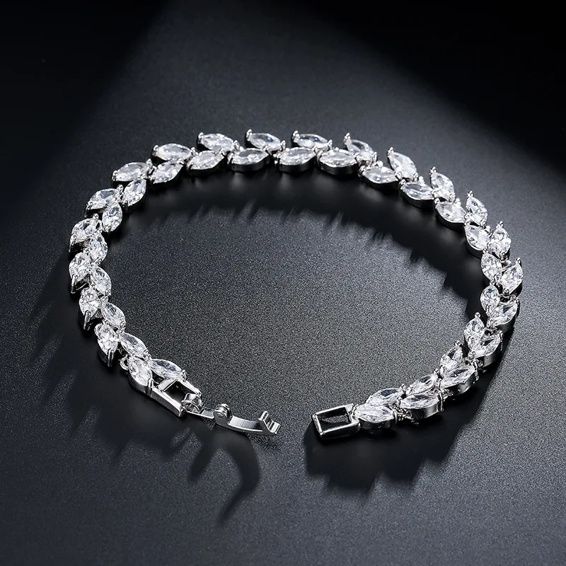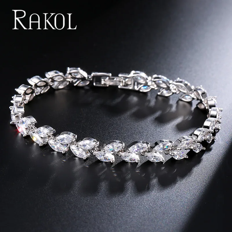 Браслет женский RAKOL, с фианитами и листьями, для свадьбы, ужина