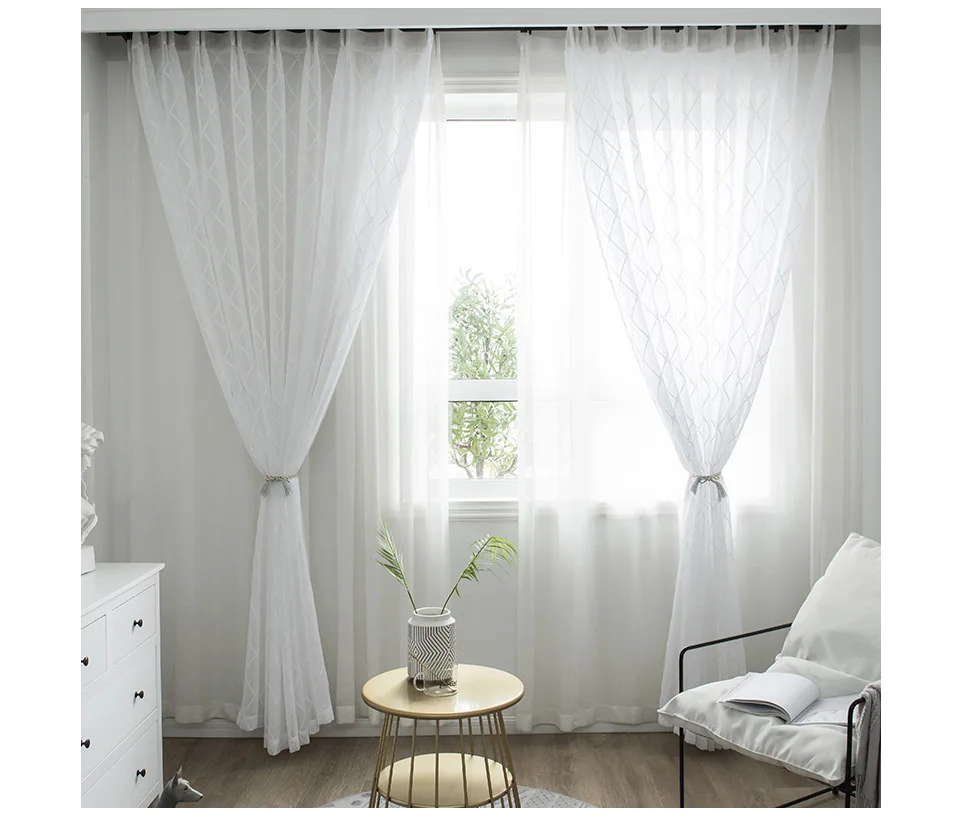 Тюлевая занавеска с вышивкой в скандинавском стиле для гостиной, сп...