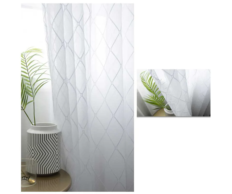 Занавески с геометрическим рисунком, тюлевые шторы для гостиной в японском стиле, прозрачная вуаль для спальни, с ромбовидной решеткой, под заказ