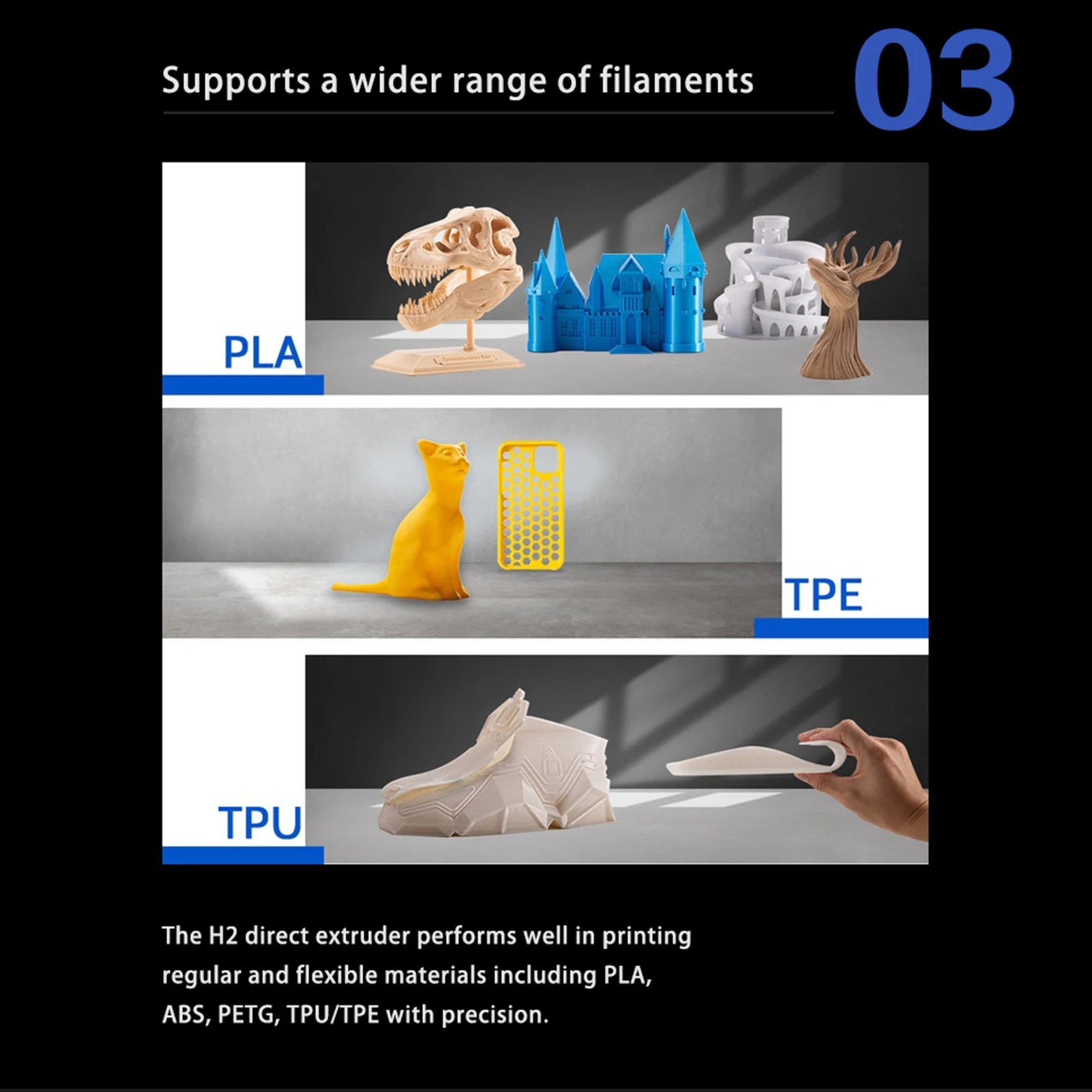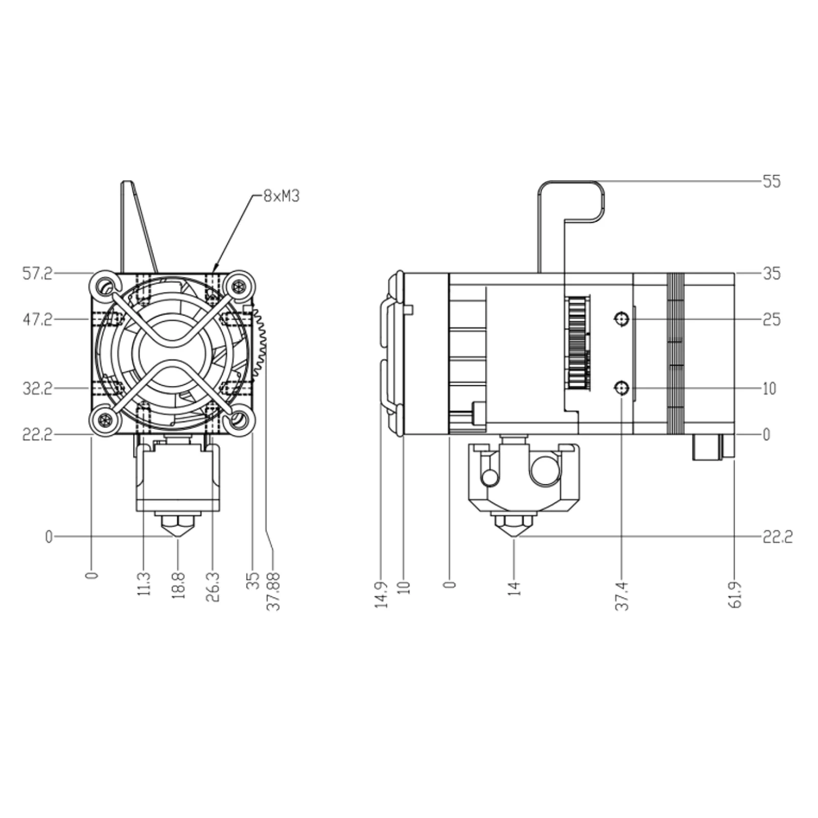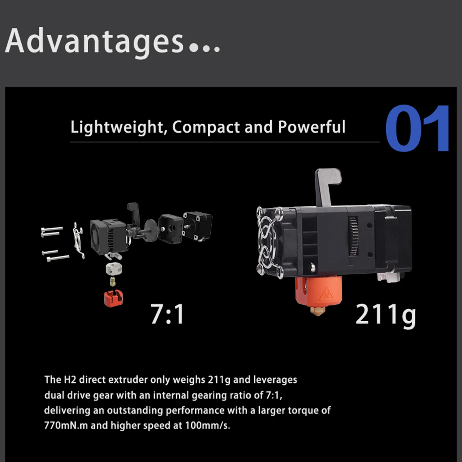 Особенности:Advantages преимущества экструдера H2: сохраняет преимущества прямых экструдеров, контроль подачи более точен, чем Удаленная Экструзия и более точная обратная откачка. Более того, требования к крутящему моменту для экструдированных шаговых двигателей относительно низки, и обмен материала удобен.Overcome устранить недостатки тяжелого экструдера: экструдер H2-это светильник, который решает проблемы большой инерции движения, сложного ускорения и замедления, а также низкой скорости печати для обеспечения точности.Ultra ультра-сильный крутящий момент с помощью многозубчатой подачи: через многозубчатую передачу, достиг 7:1 коэффициента передачи крутящего момента, сверхсильный крутящий момент 770mN.m.Low низкая шероховатость: гладкость внутренней стенки теплового разрыва и сопла равна Ra0.4, что эффективно против засорения.High высокая производительность рассеивания тепла: тепловая структура потокового типа для сверхэффективного охлаждения.Спецификация:Модель: H2 прямой экструдерМатериал: металлМетод экструзии: двухзубчатая экструзияМаксимальная температура печати: 260 ℃ (Upgradeable до 500 ℃)Вес: 211 г (включая нагревательный алюминиевый блок, вентилятор)Максимальная штранг-прессования силы: 7,5 кг (в зависимости от того, нити)Емкость штранг-прессования (на основе существующих): 600 мм & sup3;/мин (в зависимости отНити)Номинальные шаги на мм (16x): 932 шагов на мм (требуется дополнительная калибровка)Рекомендуемый ток двигателя: 800 мАДиаметр нити и допуски: 1,75 ± 0,05 ммРазмер изделияРазмер XYZ (включая вентилятор): 76.8x38x77.2ммДиаметр сопла: 0,4 ммОбогреватель --Размер головки: 5x20 ммМощность: 40 ВтВентилятор --Размер: 35x35x10 ммНапряжение: 24 ВСкорость: 6000 г/мин (± 10%)Длина линии: 1 мШаговый двигатель --Длина мотора: 1000 ммНоминальное напряжение: DC3.45VНоминальный ток: постоянный ток 1.5A/фазаПосылка Размеры: 14,5x10x4,7 см/5,7x4 x 1.9inВес посылка: 13,9 унций/365 гУпаковочный лист1 х H2 экструдер комплект