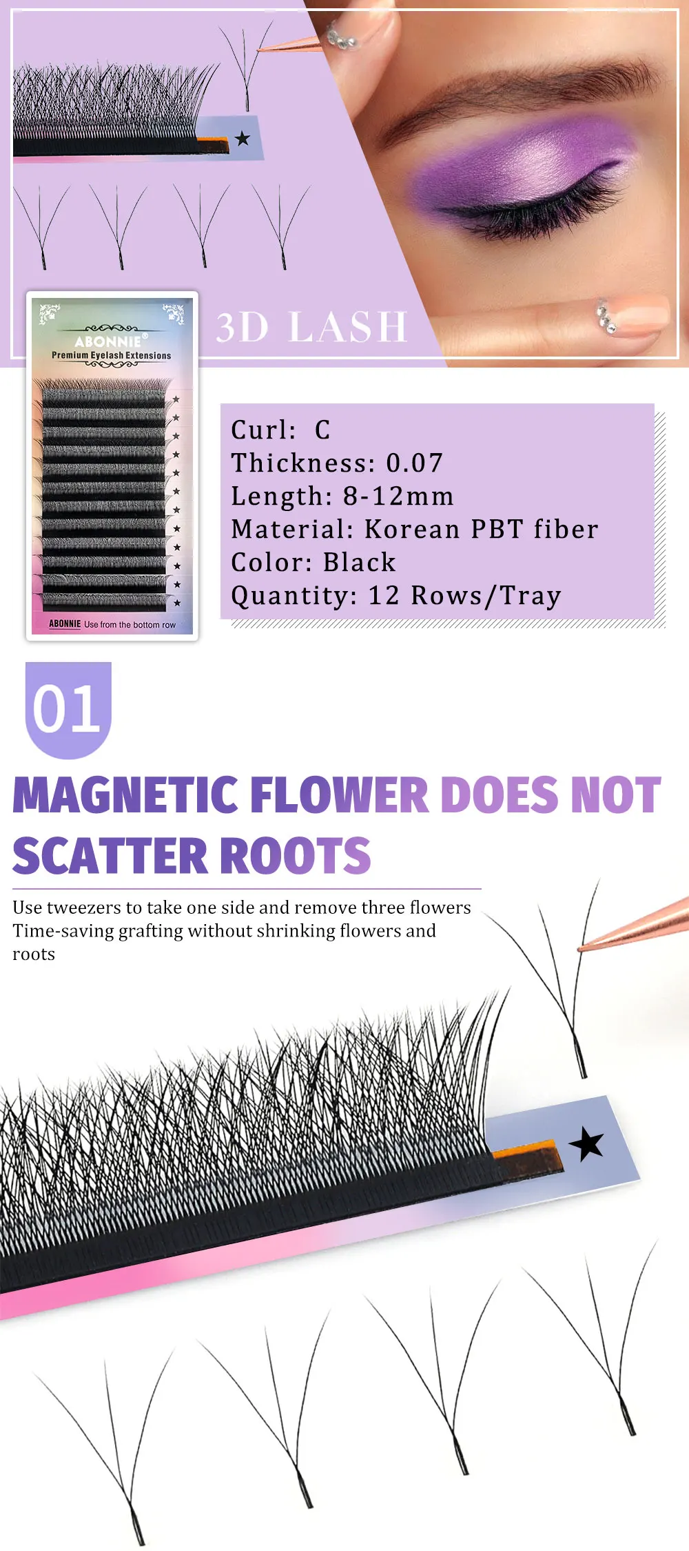 Abonnie 3D Цветочные ресницы W форма готовые объемные веерные длинные базовые вентиляторы премиум-класса матовые ресницы для наращивания камелии ресницы для красоты глаз