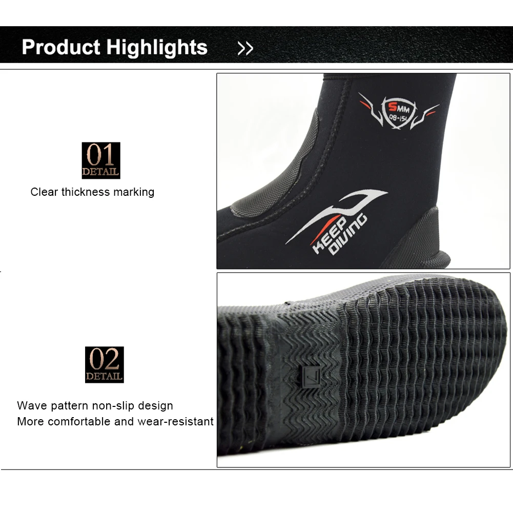 Неопреновые сапоги для подводного плавания 5 мм, водонепроницаемая обувь с вулканизацией, зимние водонепроницаемые теплые Ласты с высоким верхом, обувь для подводной охоты, Прямая поставка