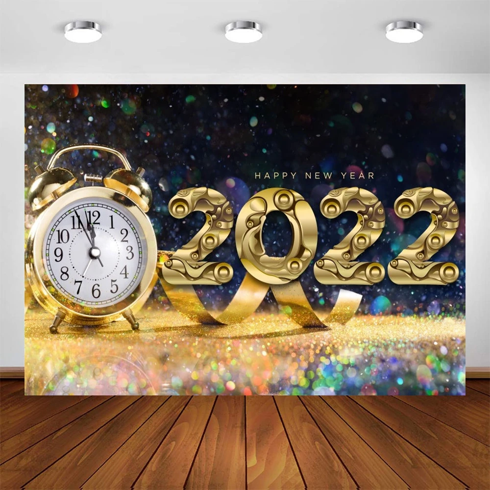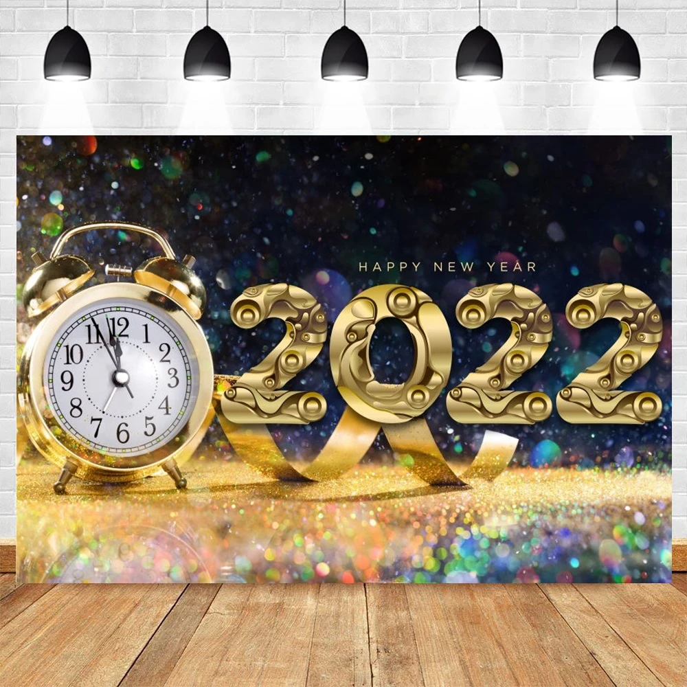 Фотофон с новым годом 2022 рождественские часы золотой блестящий фотографический фон декорация фотозон Фотофон