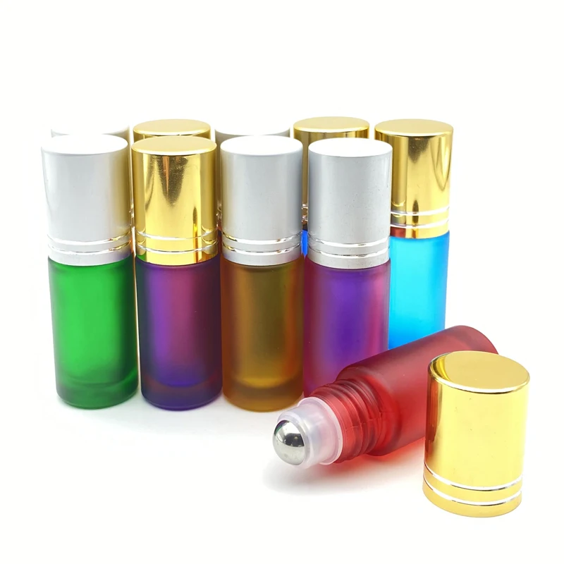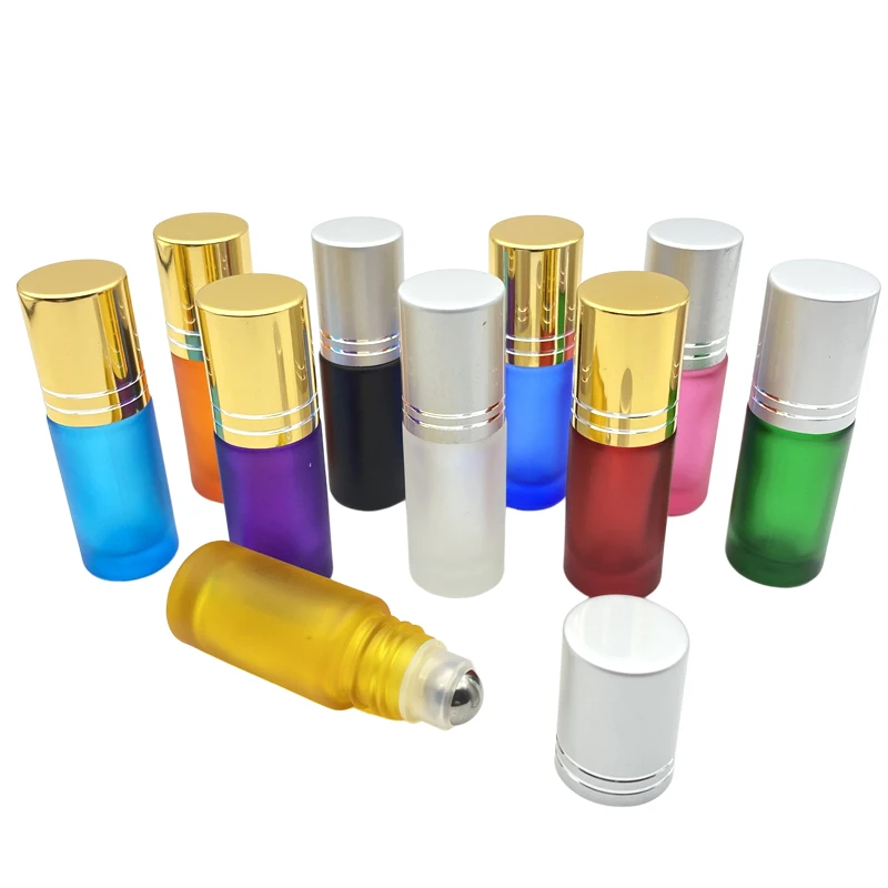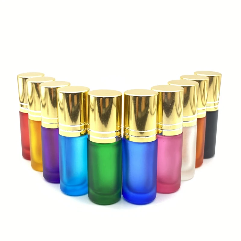 5 шт. пустой 5 мл матовый цвет Толстый Стеклянный рулон на бутылке парфюм 5cc роликовый шар прочный для путешествий искусственная Золотая крышка