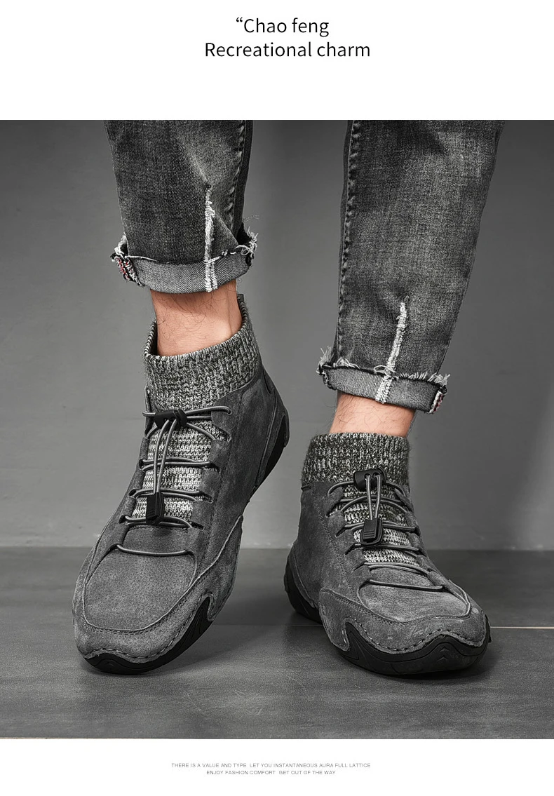 Туфли мужские из ПУ кожи, микрофибра, плоская подошва, высокие берцы, повседневная обувь для ходьбы