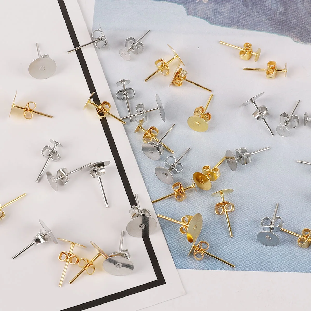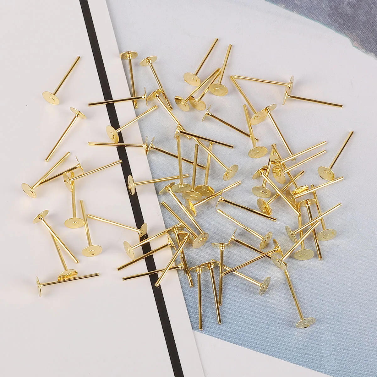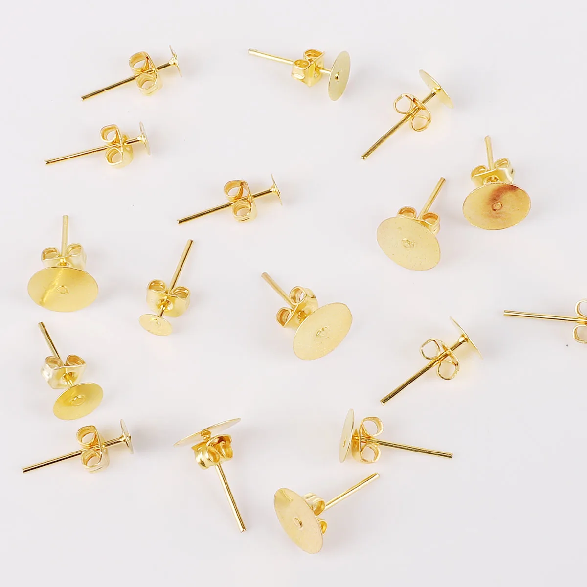 Золотистыесерьги из родия, пустая круглая основа для кабошона, пусеты для ушей, плоская основа, серьги-гвоздики, 100 шт., 4 мм, 6 мм, 8 мм