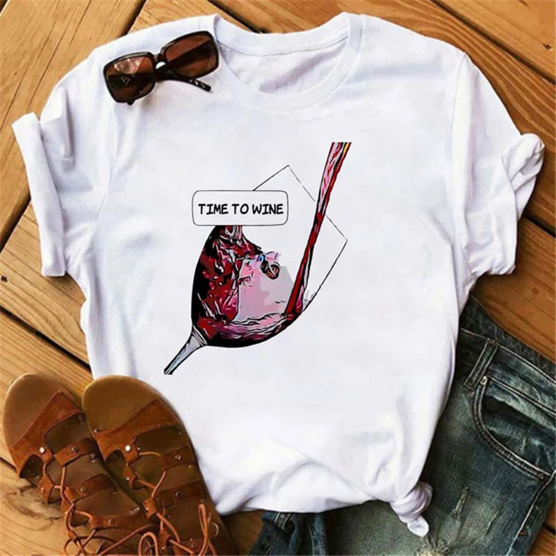FIXSYS партнеров в винном графический принт Женская футболка лето Н...