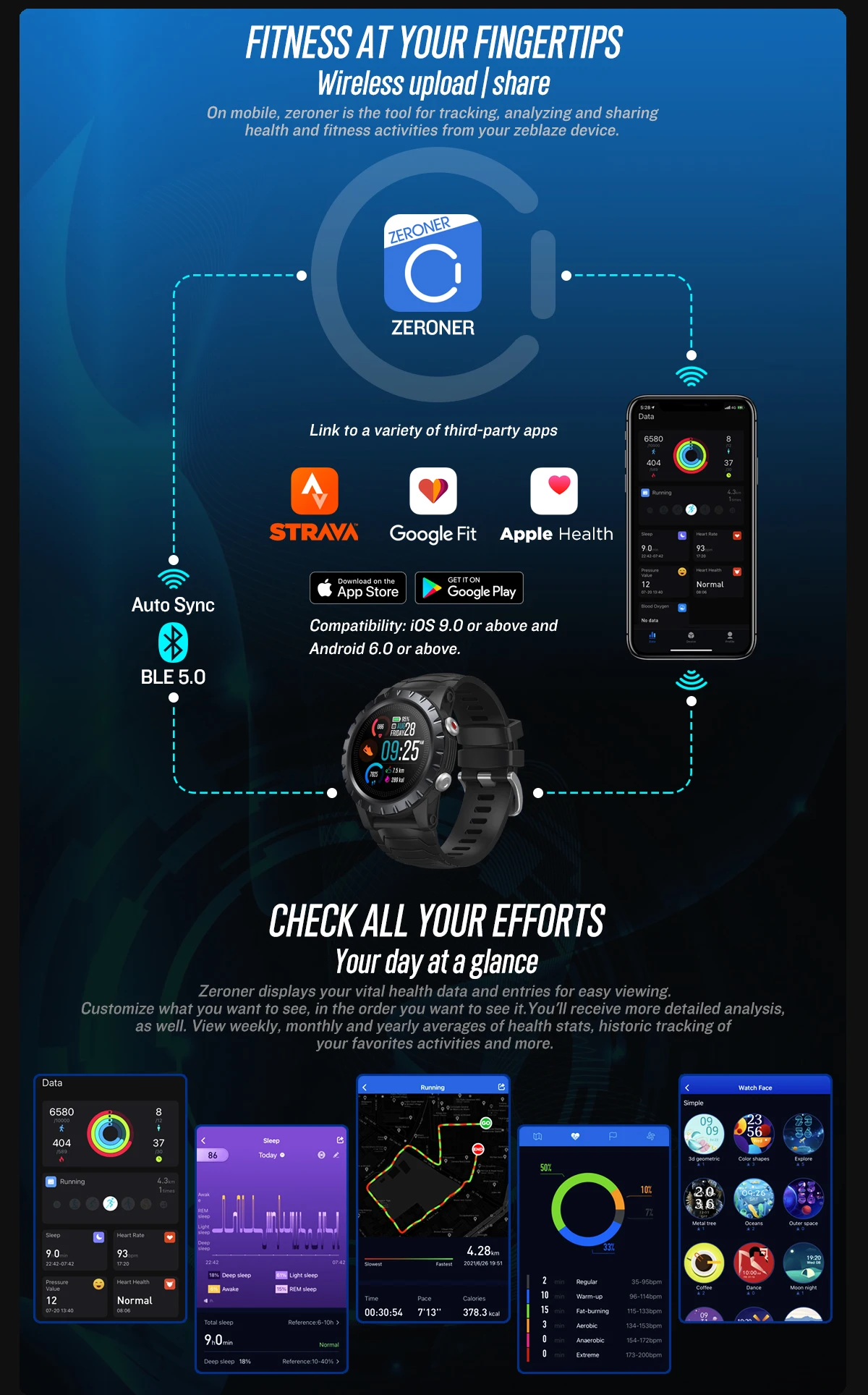Название приложения: ZeronerСовместимость смартфонов: Android 6,0 или iOS 9,0 и выше.Хранение данных: обзор и подробности данных за 14 дней.Обновление OTA: Поддержка