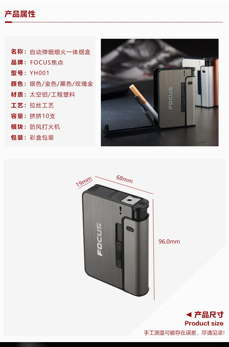 Автоматический чехол для сигарет, гаджеты для мужчин, портативный гаджет, металлические бытовые товары, рождественские подарки, вмещает 10 сигарет