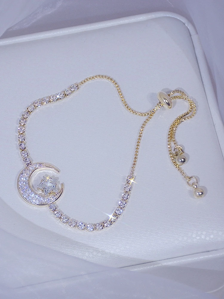 Элегантный циркониевый регулируемый браслет с сердцем луной звездам...
