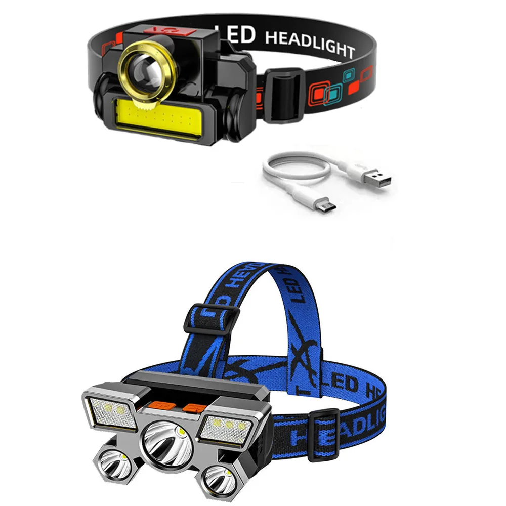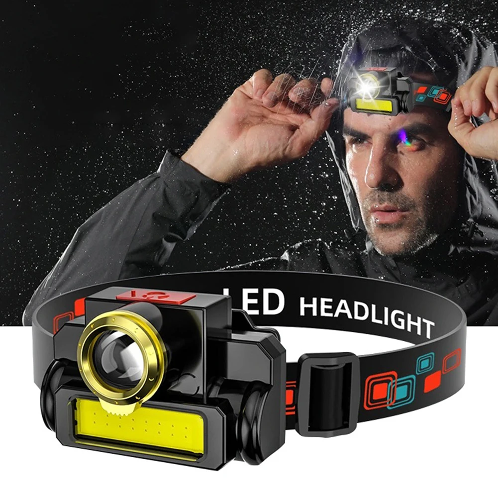 Портативный светодиодный налобный фонарь XPE + COB, водонепроницаемый уличный фонарь с USB-зарядкой и зумом для рыбалки, уличный фонарь