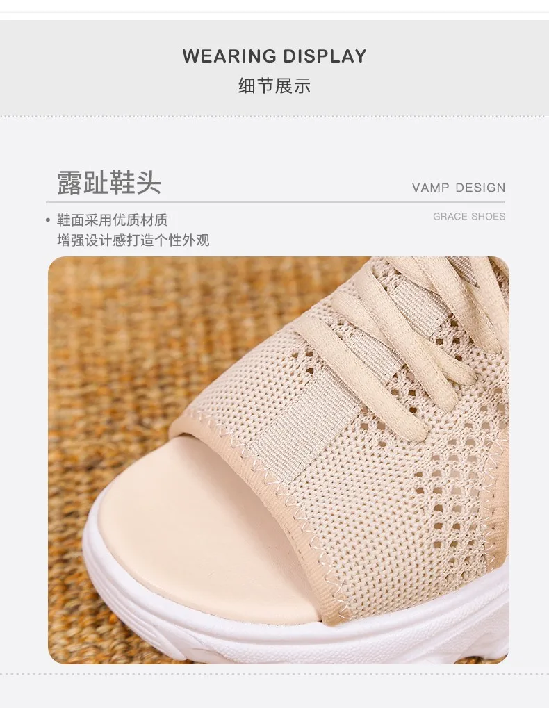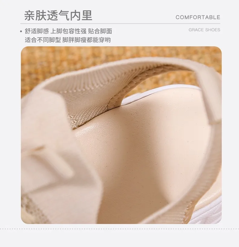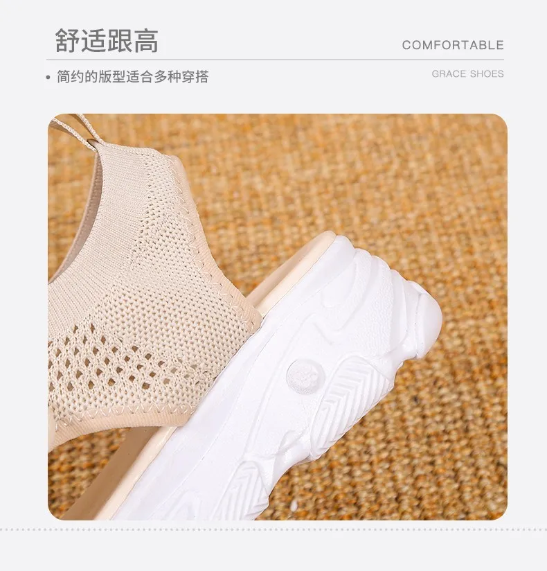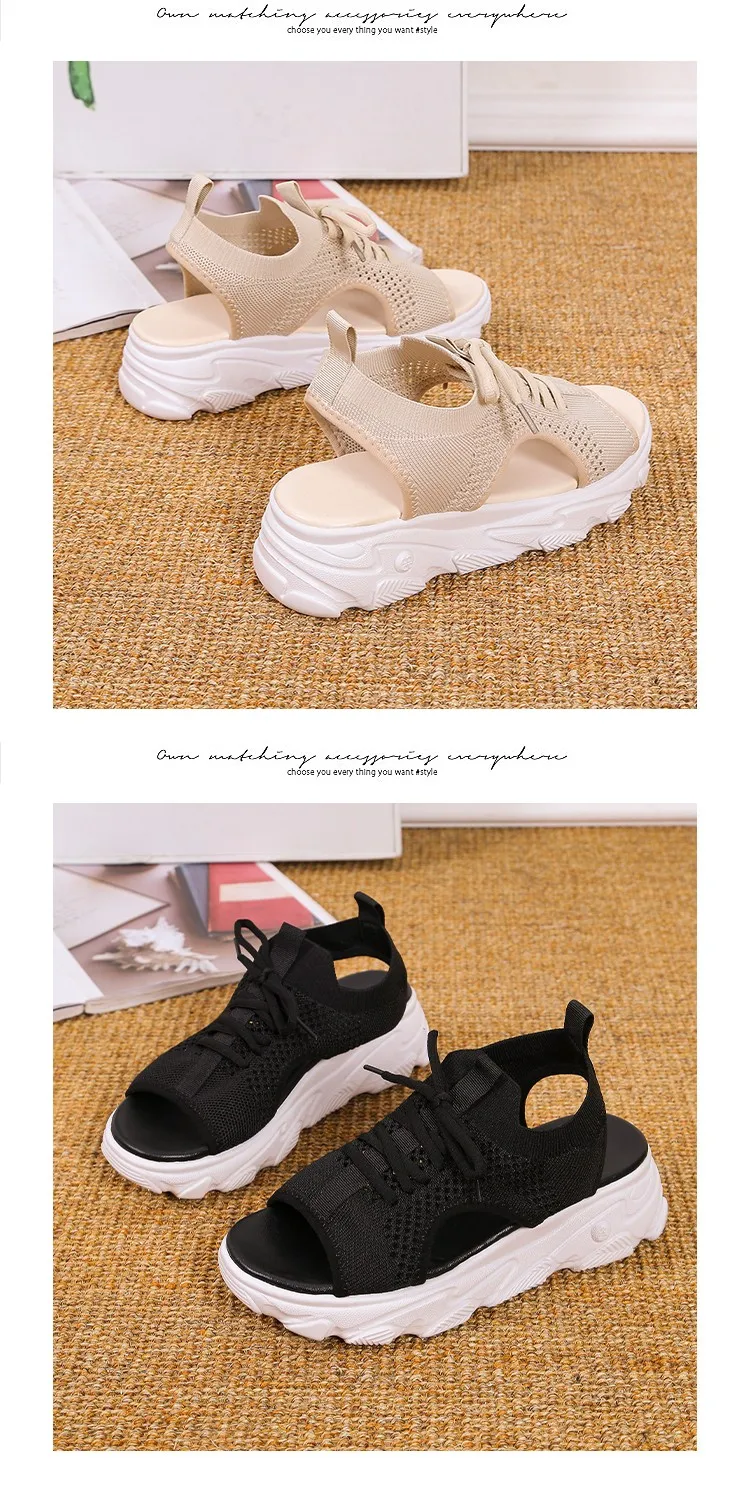 Женские летние сандалии на танкетке, удобные повседневные Вязаные сандалии с круглым носком, на среднем каблуке, новинка 2021