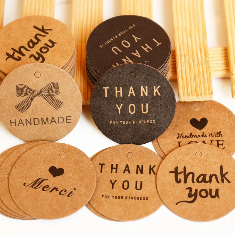 100 шт.лот спасибо бирки с 10 м пеньковой веревкой для деловой упаковки хлебобулочные круглые этикетки ручной работы из крафт-бумаги для упаковки подарков
