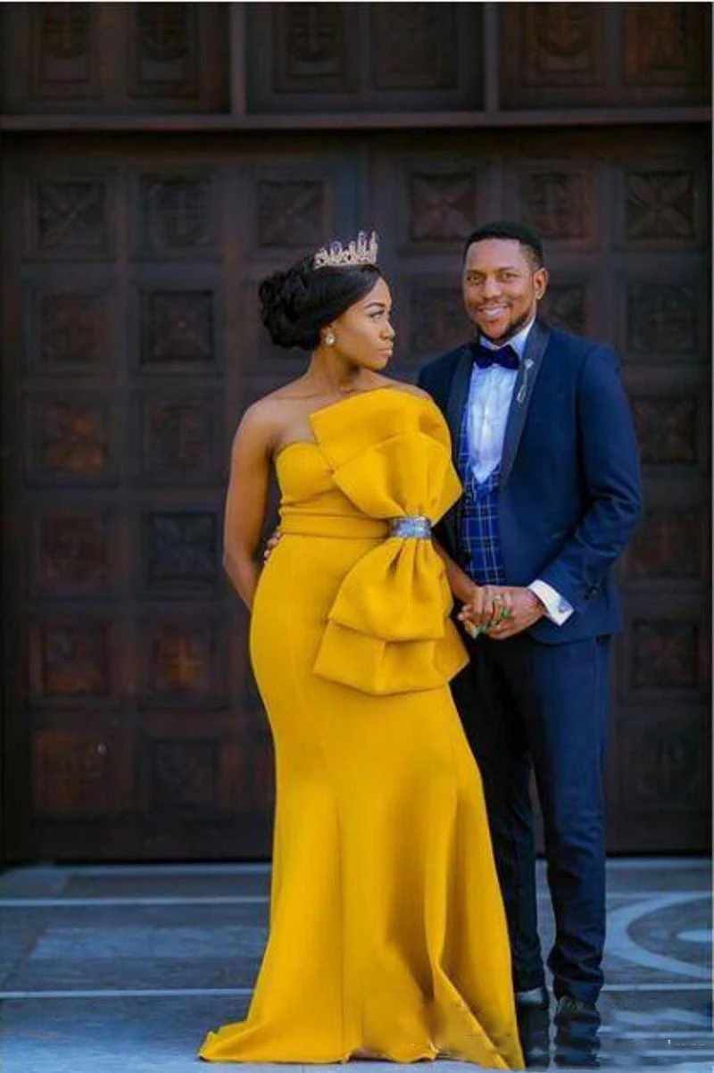 Aso Ebi Сумочка в африканском стиле Русалка Вечерние платья желтого...