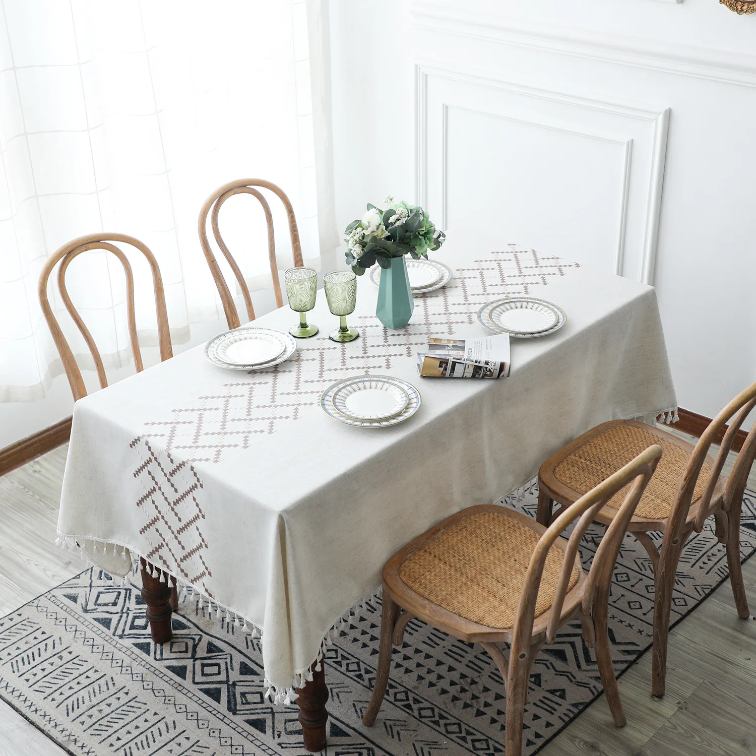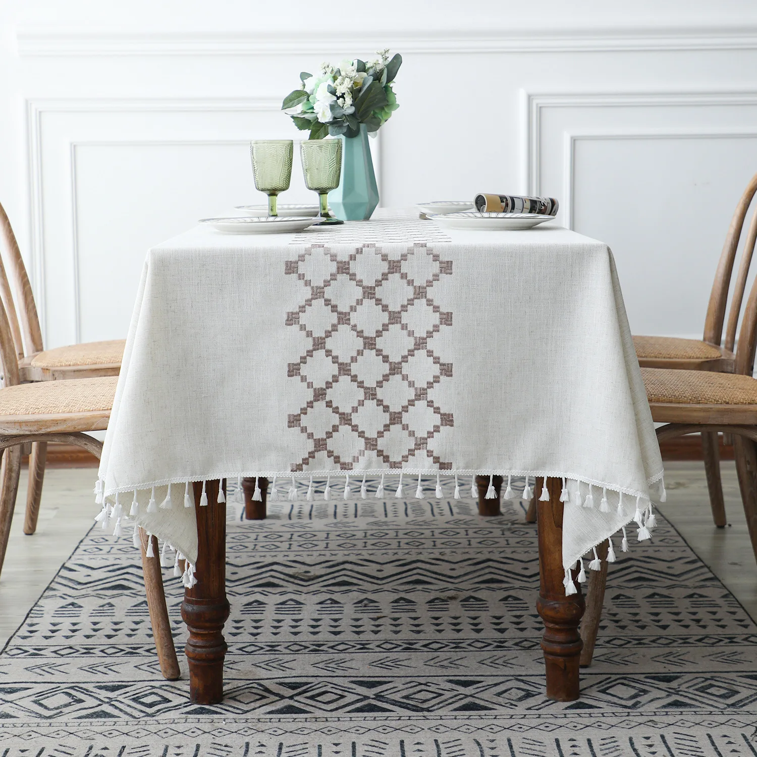 Декоративная льняная скатерть в Пасторальную клетку с кисточками, водонепроницаемая маслонепроницаемая прямоугольная скатерть для свадебного обеденного стола, чайная ткань