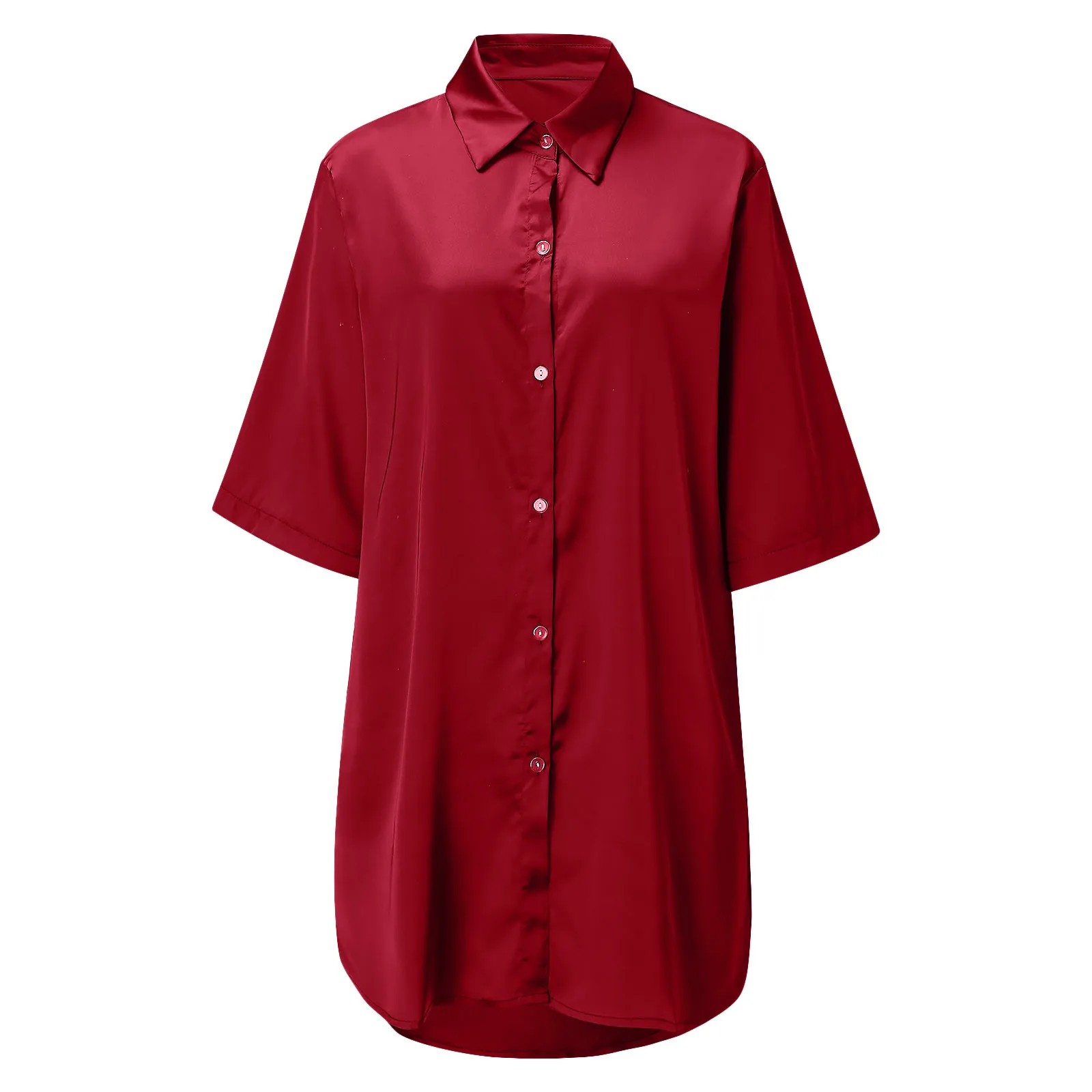 Повседневная Свободная Женская однотонная шелковая пикантная рубашк...