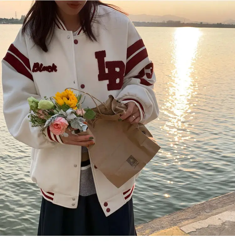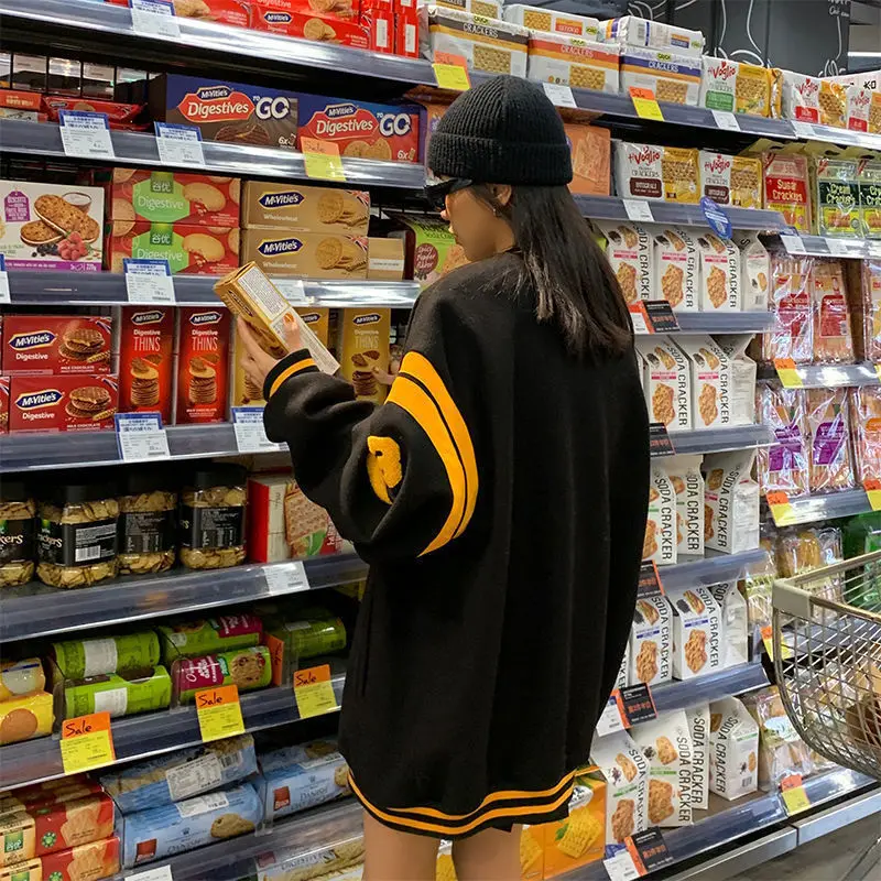 Бейсбольная куртка большого размера в Корейском стиле, куртки с надписью в стиле хип-хоп, свитшот для женщин и мужчин, осенняя уличная одежда 2021, пальто, одежда для пар