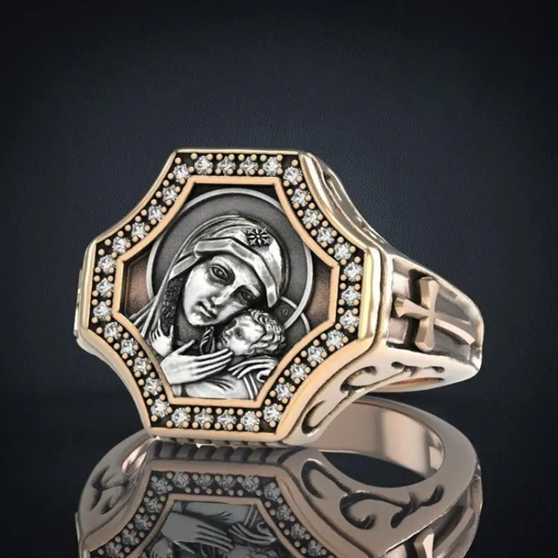 Мужское и женское модное винтажное кольцо с портретом Девы Марии, р...