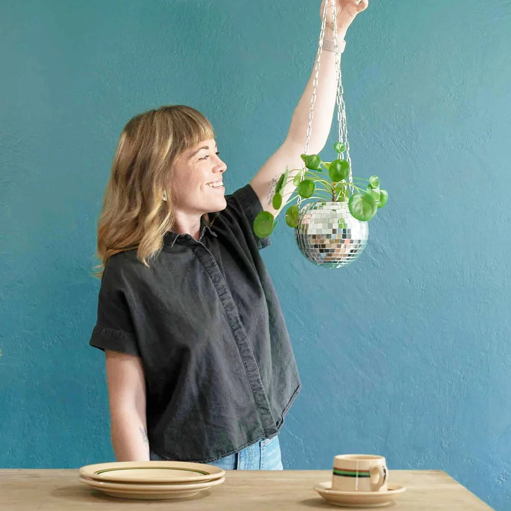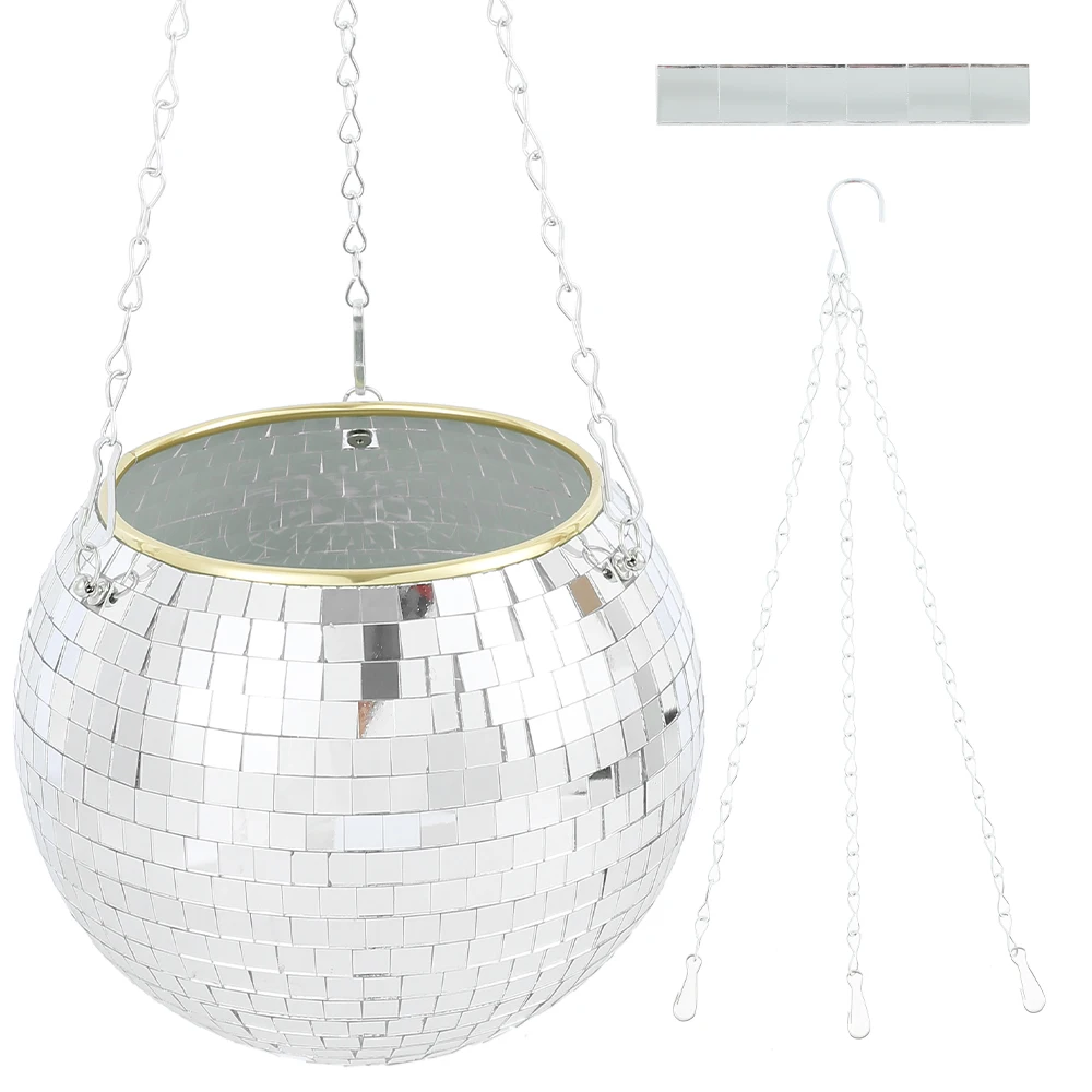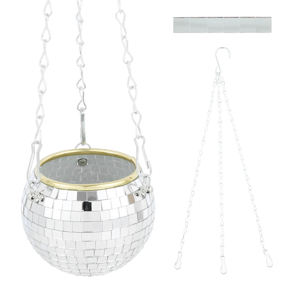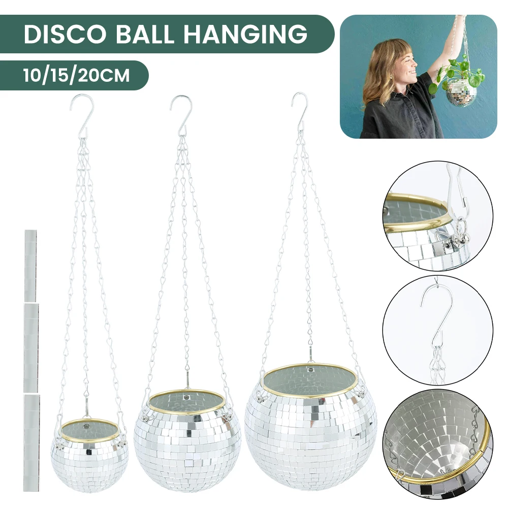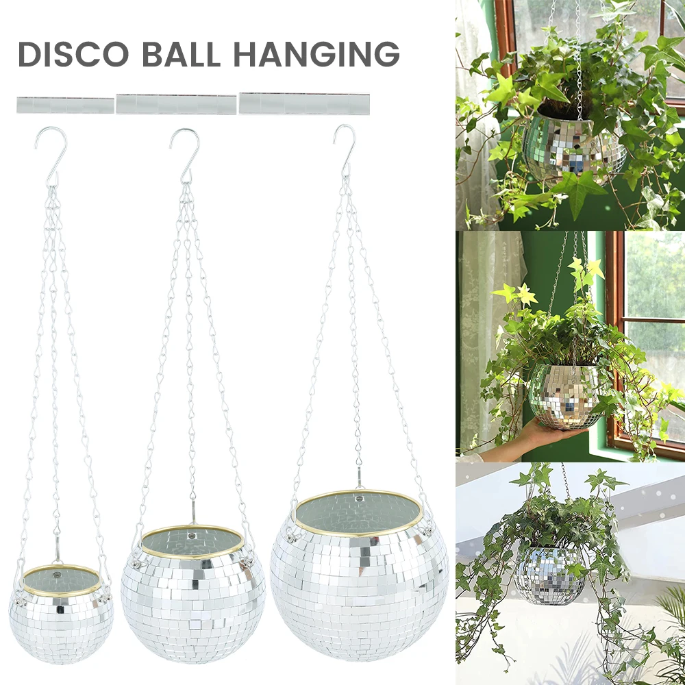 Дискотечный шар, подвесная корзина, круглый зеркальный горшок, цветочный горшок, настенный горшок, веревочное зеркало, подвесная корзина, садовый декор, ваза