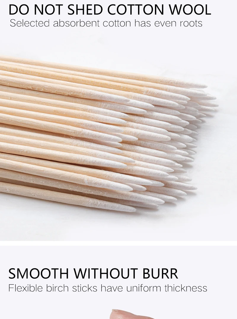 Деревянные ватные палочки для ногтей, 300 шт., чистящие палочки, на...