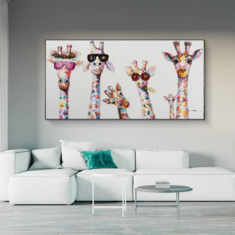 Мультяшные жирафы, Картина на холсте, милый скандинавский художественный плакат и принты, холст, настенные картины для детской комнаты, украшение для дома