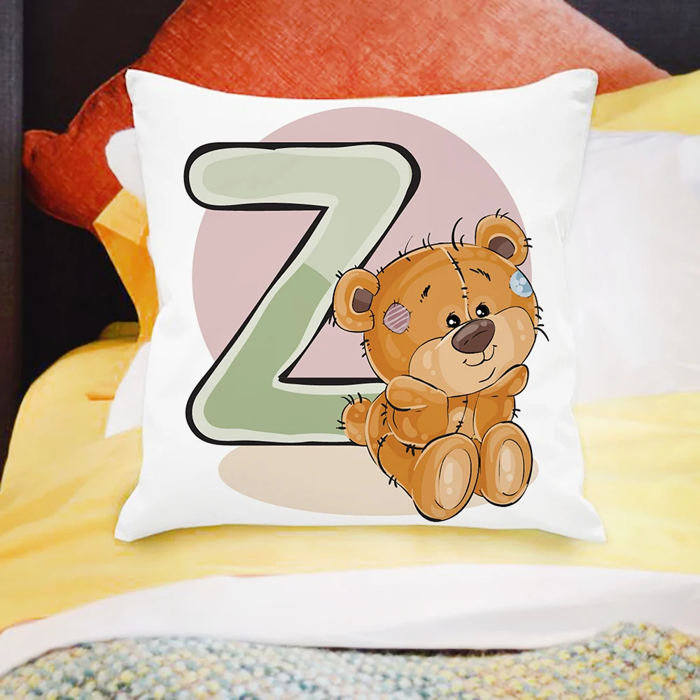 45x45 см наволочка с принтом английского алфавита A-Z домашний диван с изображением медведя из мультфильма декор для детской комнаты наволочка с милым животнымОписание: