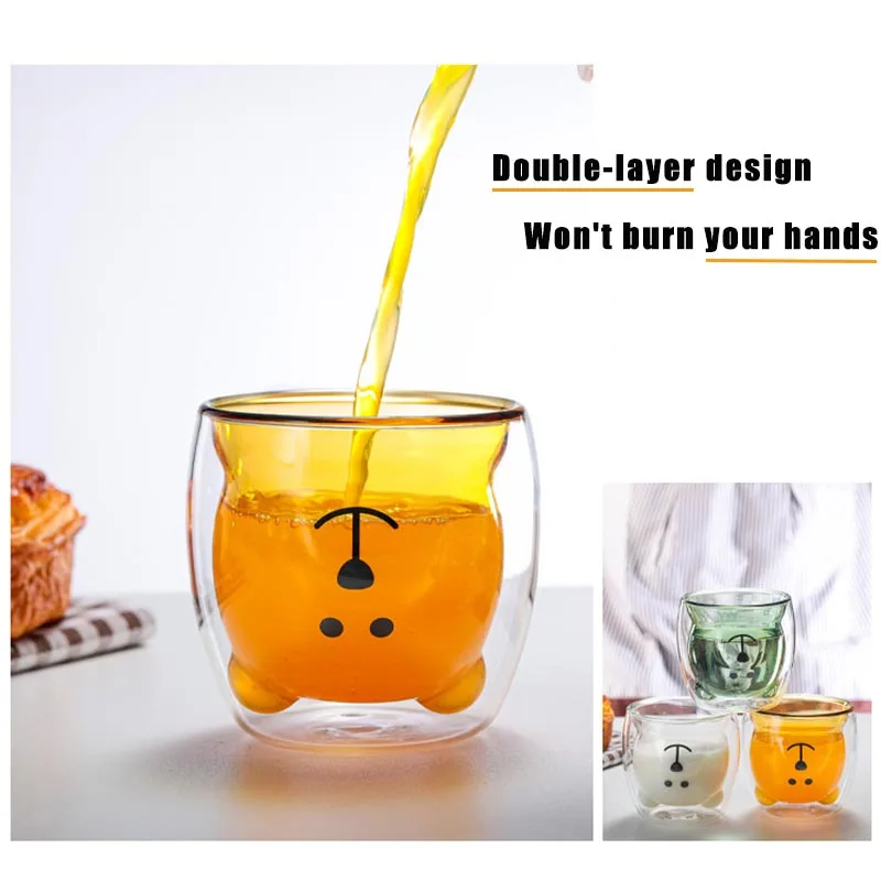 Милая кружка с медведем, Стеклянная Двойная стеклянная антиожоговая изоляция, креативная кофейная чашка, кружка, чашка для молока, сока, посуда для напитков, подарок