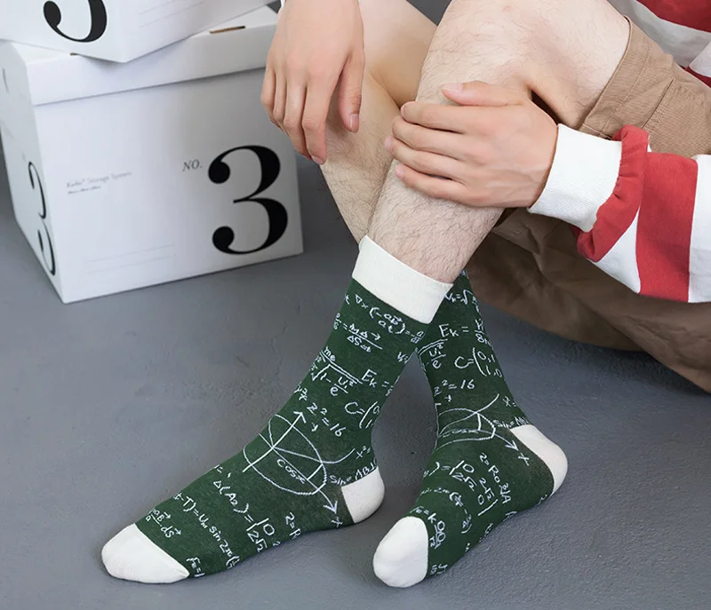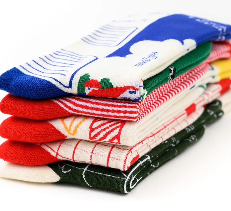 Мужские хлопковые Веселые носки с принтом, модные носки для скейтборда, носки в полоску с пазлами, клетчатые геометрические носки в стиле Харадзюку для деловечерние