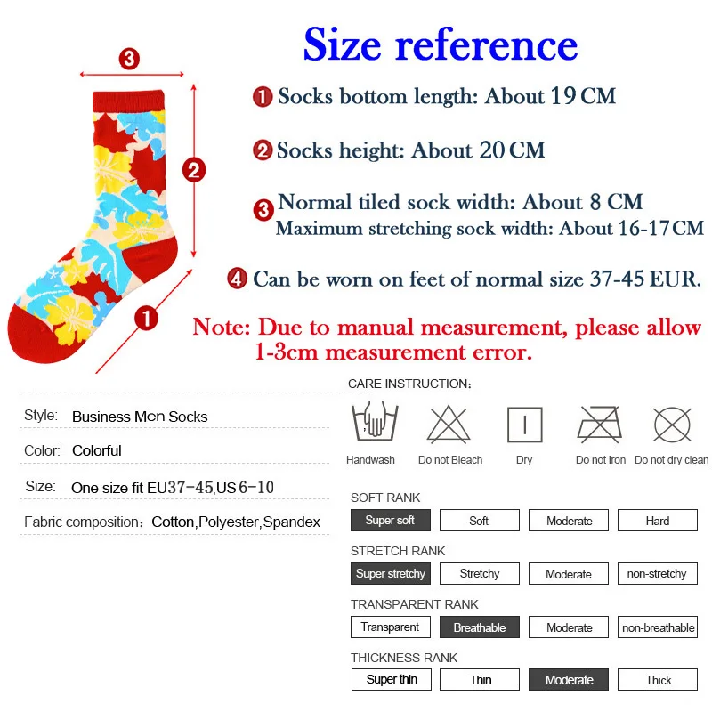 Подходит Пол: мужчинПодходящий сезон: весна, осень, зимаМатериал: хлопок, полиэстер, спандексФункция: пот, дышащийРазмер: Свободный размер (EUR37-45, US6-10)Упаковка: OPP сумка, включает в себя 1 пару 100% новых носков