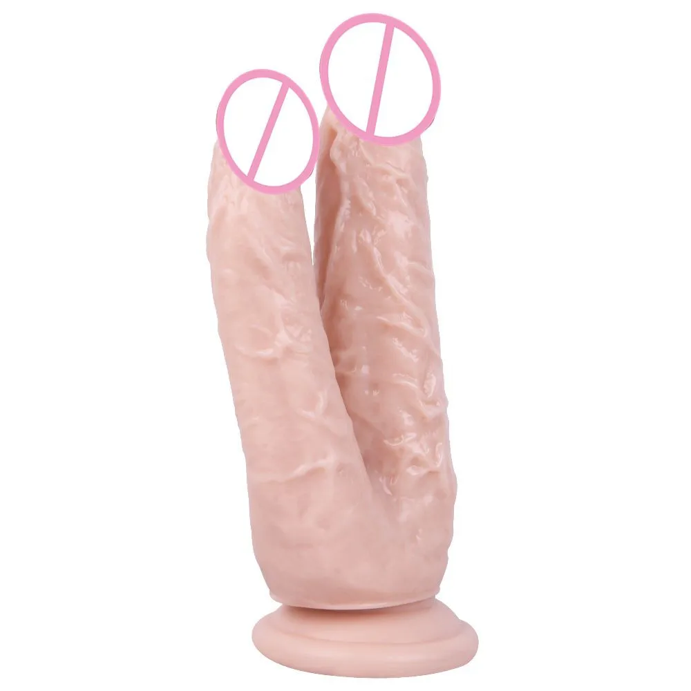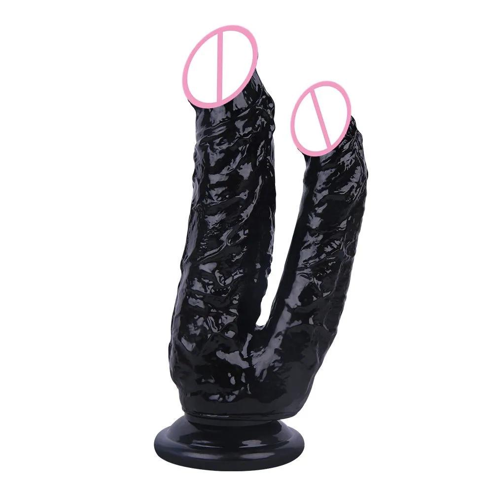 Двойные фаллоимитаторы для женской мастурбации Двойное проникновение как Вагина, так и анус большой член с присоской секс-игрушка ремешок на два фаллоимитатора